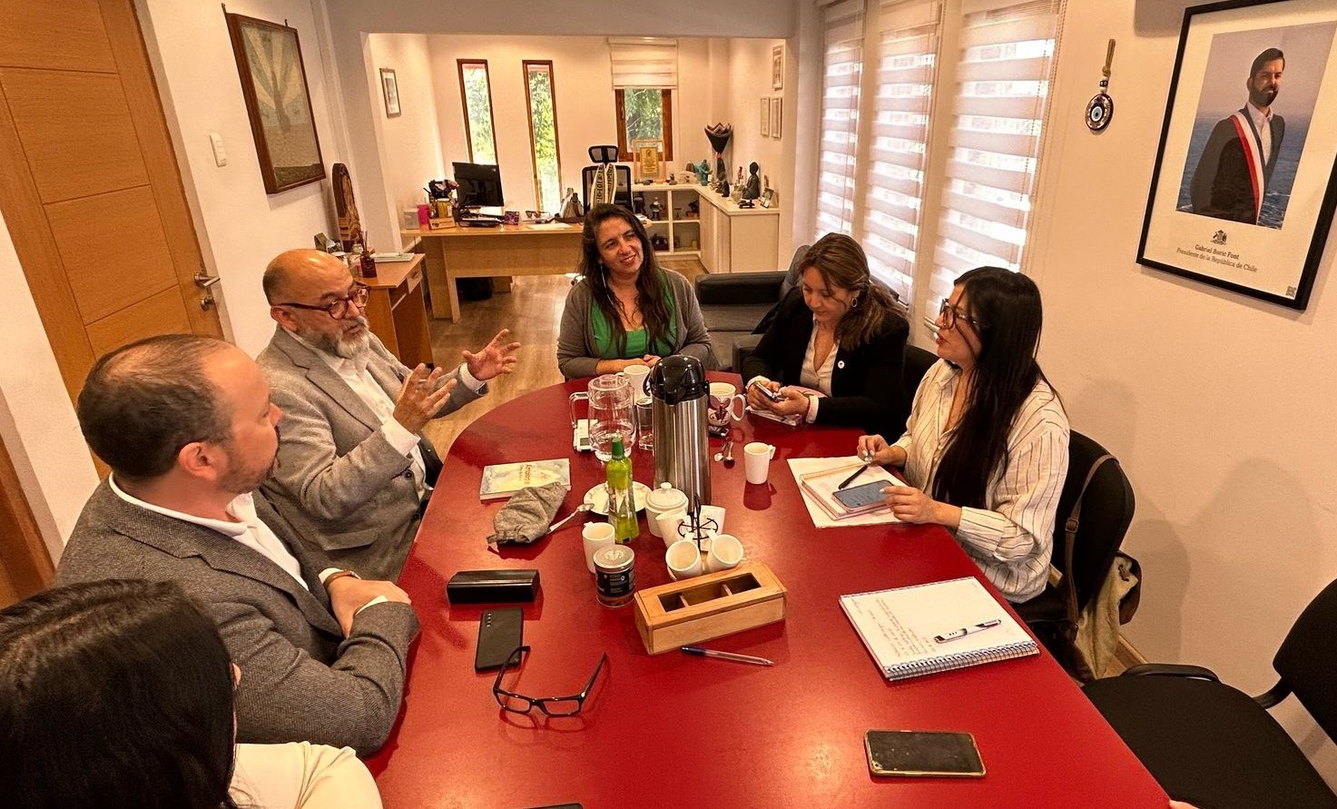 En la reunión participaron además el director de Comunicaciones, Osvaldo Bizama; la coordinadora de la Unidad de Medio Ambiente y Sostenibilidad, Yenny Olivares, y la coordinadora de la Unidad de Gestión de la Vinculación, Mariana Rodríguez.