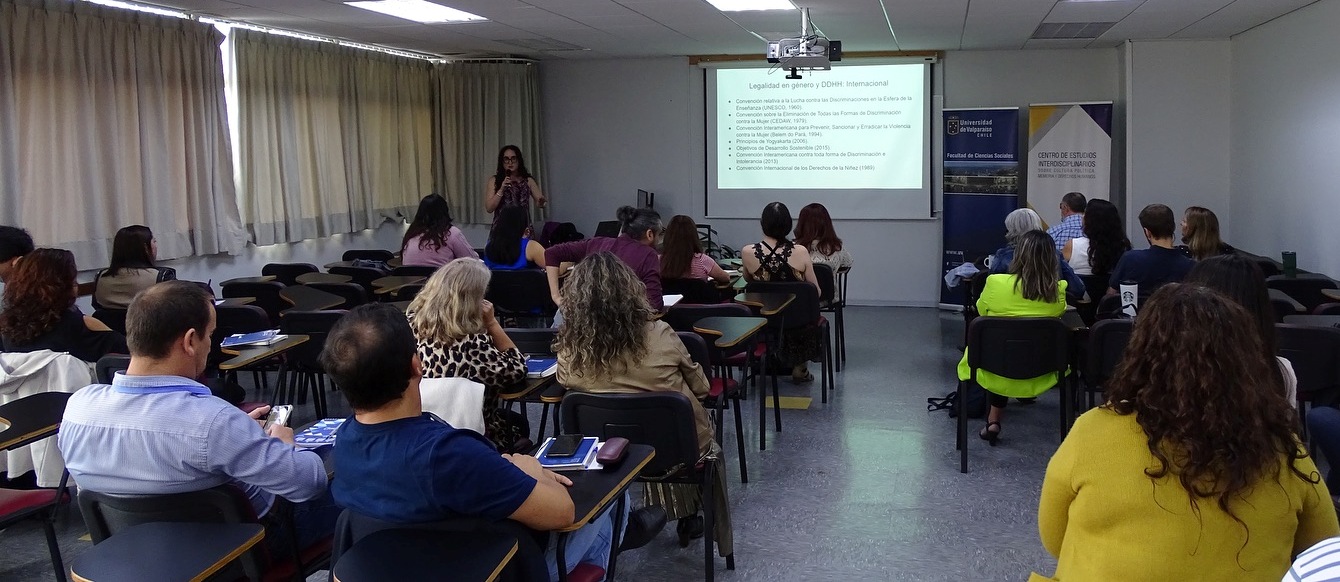 A través de una alianza con el Centro Interdisciplinario de Estudios en Cultura Política, Memoria y Derechos Humanos (CEI-CPMDH), la Facultad de Ciencias Sociales UV organizó durante el mes de marzo dos cursos de formación sobre género y Derechos Humanos. El primero estuvo destinado a funcionarias y funcionarios administrativos de la Facultad, y el segundo orientado a docentes de las tres carreras que integran la Facso: Trabajo Social, Psicología y Sociología.