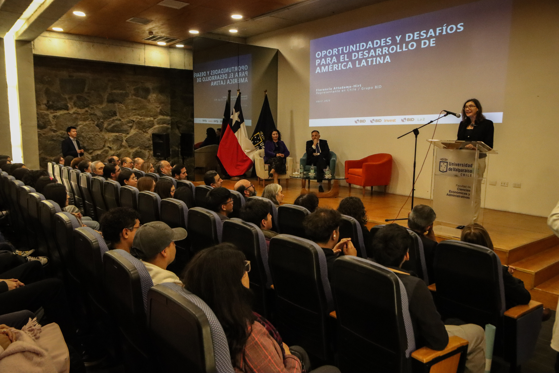 En una ceremonia realizada en la sede Las Heras, la Facultad de Ciencias Económicas y Administrativas de la Universidad de Valparaíso inauguró su año académico 2025. En la ocasión, María Florencia Atademo Hirt, representante del Banco Interamericano de Desarrollo (BID) en Chile, dictó la clase magistral “Innovación y desarrollo en América Latina”.