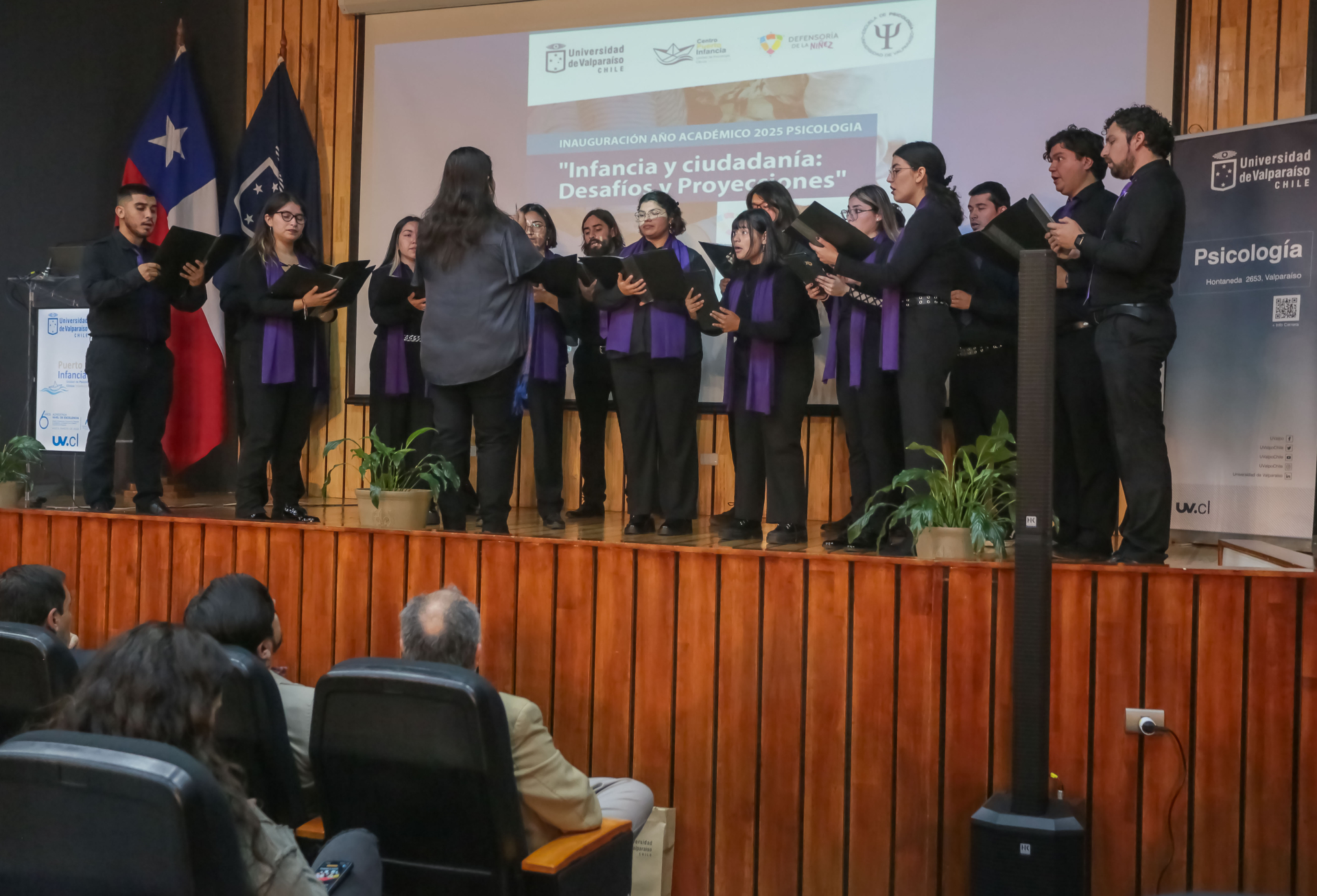 La Camerata Vocal de la carrera de Pedagogía en Música en el acto inaugural del año académico de la Escuela de Psicología.