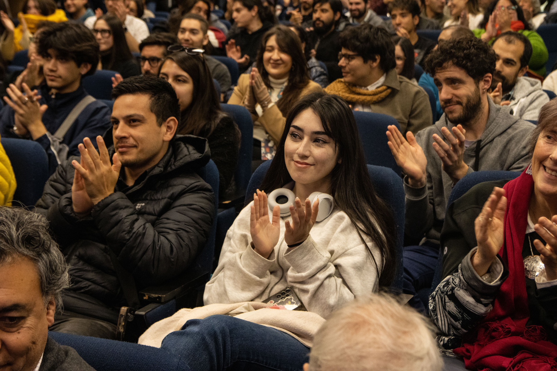 La emoción también se vivió entre las y los estudiantes. César Amaya, magíster en Ciencias Biológicas mención Neurociencias y actualmente estudiante del programa de Doctorado en Ciencias con mención en Biofísica y Biología Computacional, expresó que “fue una experiencia única compartir con alguien que ha revolucionado el campo. Ver su cercanía y humanidad, siendo alguien que cambió en su momento nuestra comprensión de los canales iónicos —los mismos con los que actualmente trabajo—, fue para mí un total honor y un privilegio. Cuando lo vi sentí esa emoción que uno tiene de niño cuando vive algo nuevo y extraordinario. Ha sido maravilloso”.