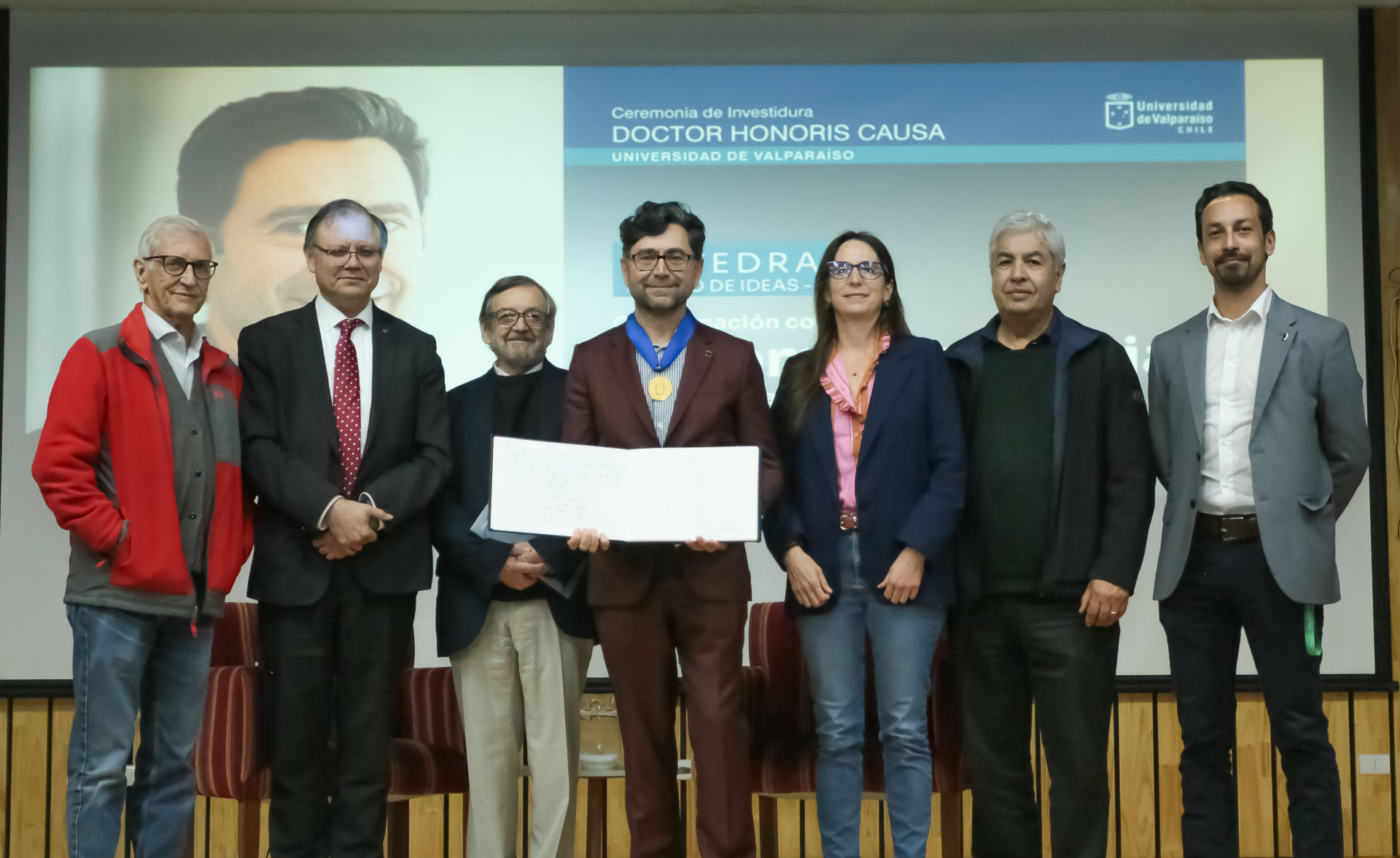 Más tarde, en la Facultad de Ciencias Sociales, se realizó el acto oficial de entrega del Doctorado Honoris Causa, la más alta distinción que otorga la Universidad de Valparaíso a figuras cuya obra ha contribuido significativamente al avance del conocimiento.