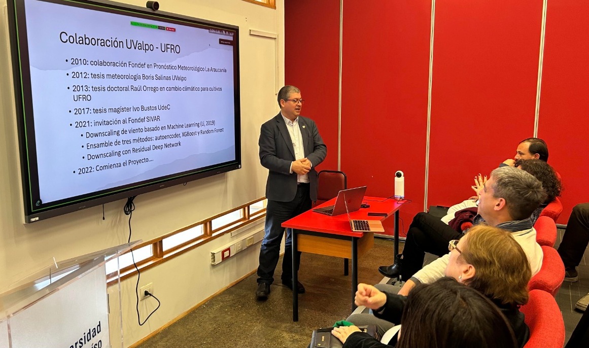 Durante la ceremonia de cierre del proyecto, los siguientes investigadores presentaron los principales avances y resultados de la iniciativa: la doctora Ana María Córdova abrió las exposiciones con la charla “Hacia una nueva frontera en la predicción del viento: SiVAR-Austral y el avance colaborativo en modelamiento atmosférico”; a continuación, el doctor Jorge Arévalo, director alterno del proyecto e investigador del mismo departamento, abordó el tema “Híper resolución operacional con WRF y machine learning: el camino recorrido por SiVAR-Austral”; posteriormente, el doctor Iván Pérez Santos, investigador asociado al Centro I+D IMAR de la Universidad de Los Lagos, presentó la ponencia “Escalas de variabilidad del viento y respuesta de la columna de agua a eventos sinópticos en la región austral de Chile”´; finalmente, el doctor Andrés Ávila, investigador del Departamento de Ingeniería Matemática de la Universidad de La Frontera, expuso “Ciencias de datos para el territorio: Inteligencia Artificial y colaboración interuniversitaria frente a desafíos climáticos”.