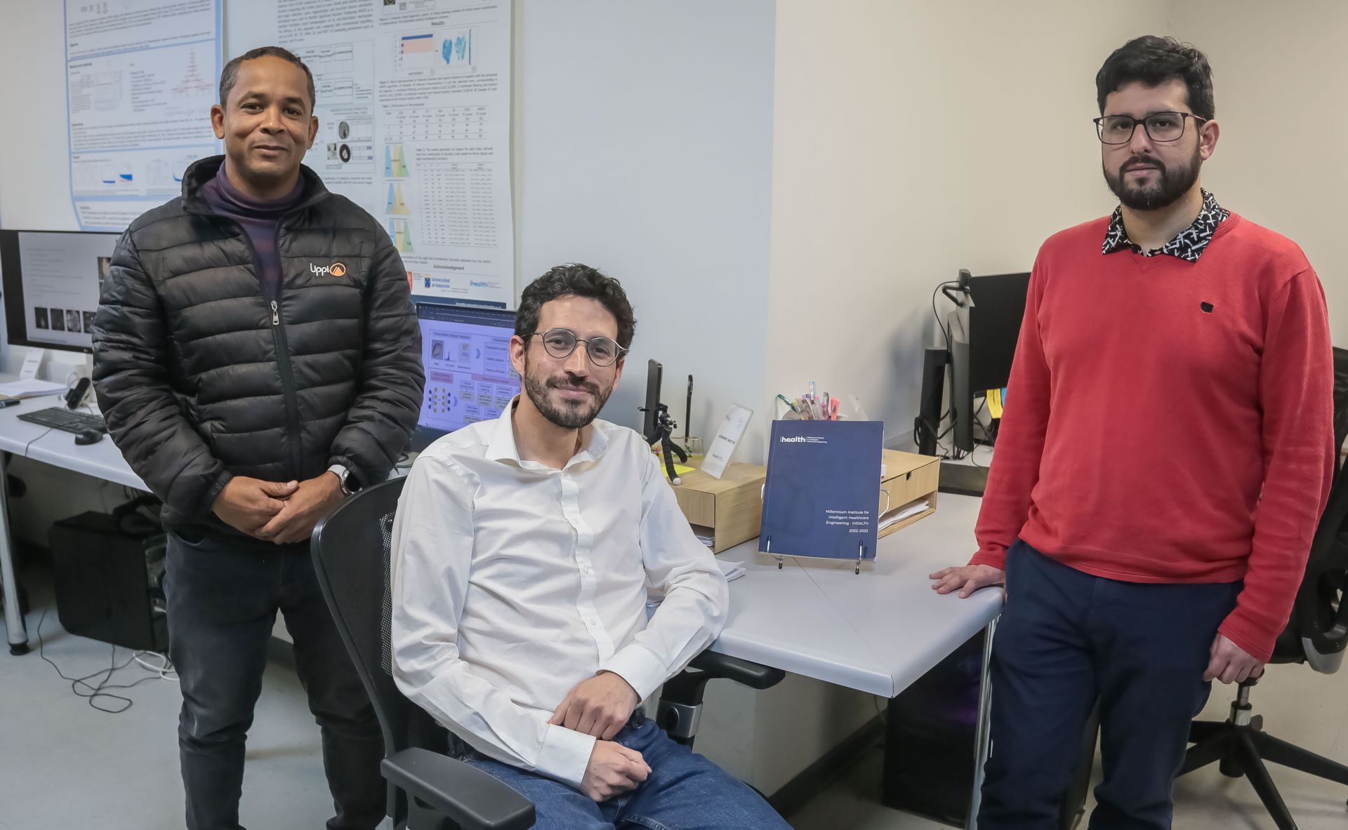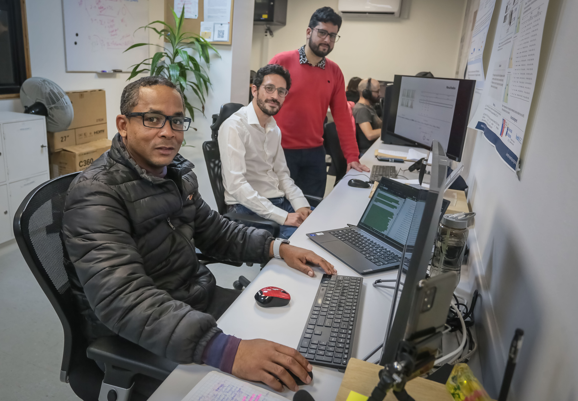 El grupo de estudiantes está integrado por Leondry Mayeta, Matías Salinas, Diego Mellado y Sebastián Ponce, del Doctorado en Ciencias e Ingeniería para la Salud, y Eduardo Cavieres, del Magíster en Ingeniería Biomédica, junto al académico Rodrigo Salas, de Ingeniería Civil Biomédica.