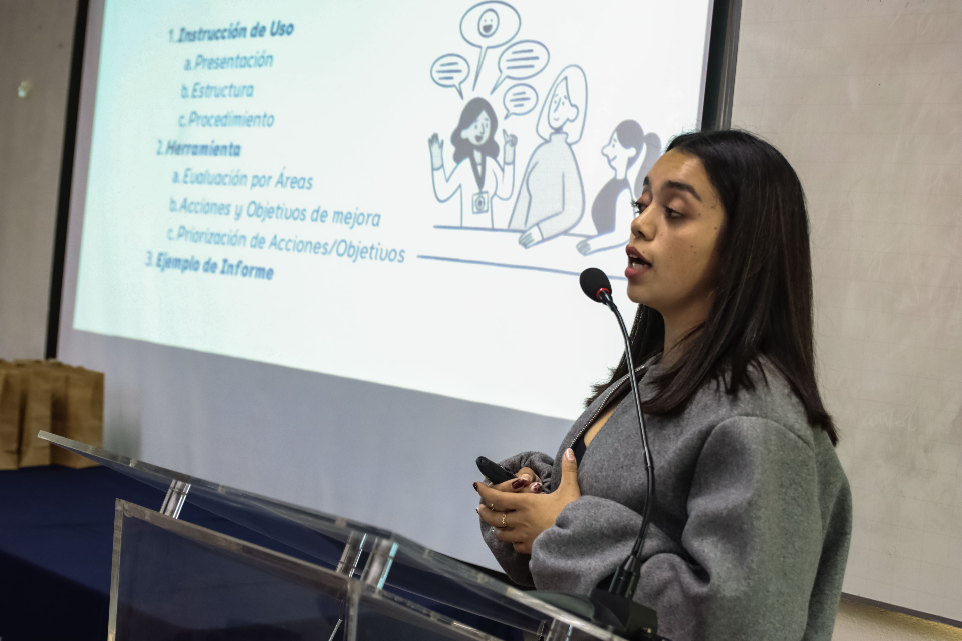 Luego fue el turno de la fonoaudióloga de la UV Katherine Ramírez, quien realizó una introducción a Minievaltea, instrumento de evaluación de la calidad de las entidades de apoyo a personas con alguna condición del espectro autista y a sus familias.