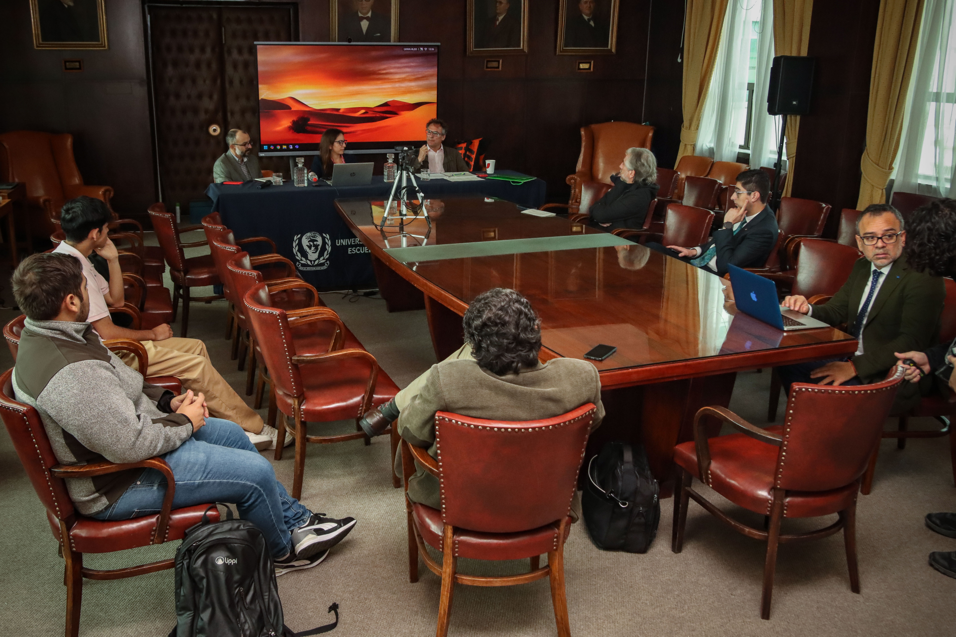Posteriormente, el profesor de la UV entregó un análisis de los diferentes conceptos e ideas esbozados por Arnulf Becker en su presentación, planteando junto con ellos los desafíos y diferentes escenarios del fenómeno planteado en la tesis del académico.