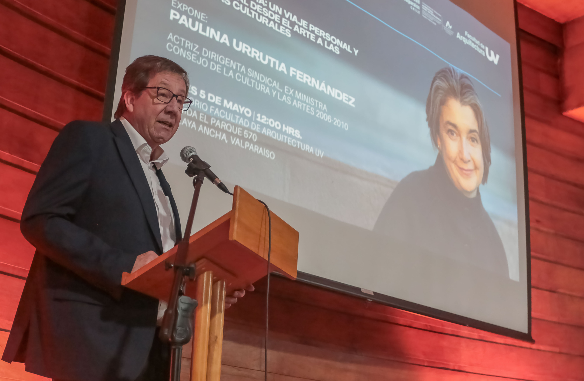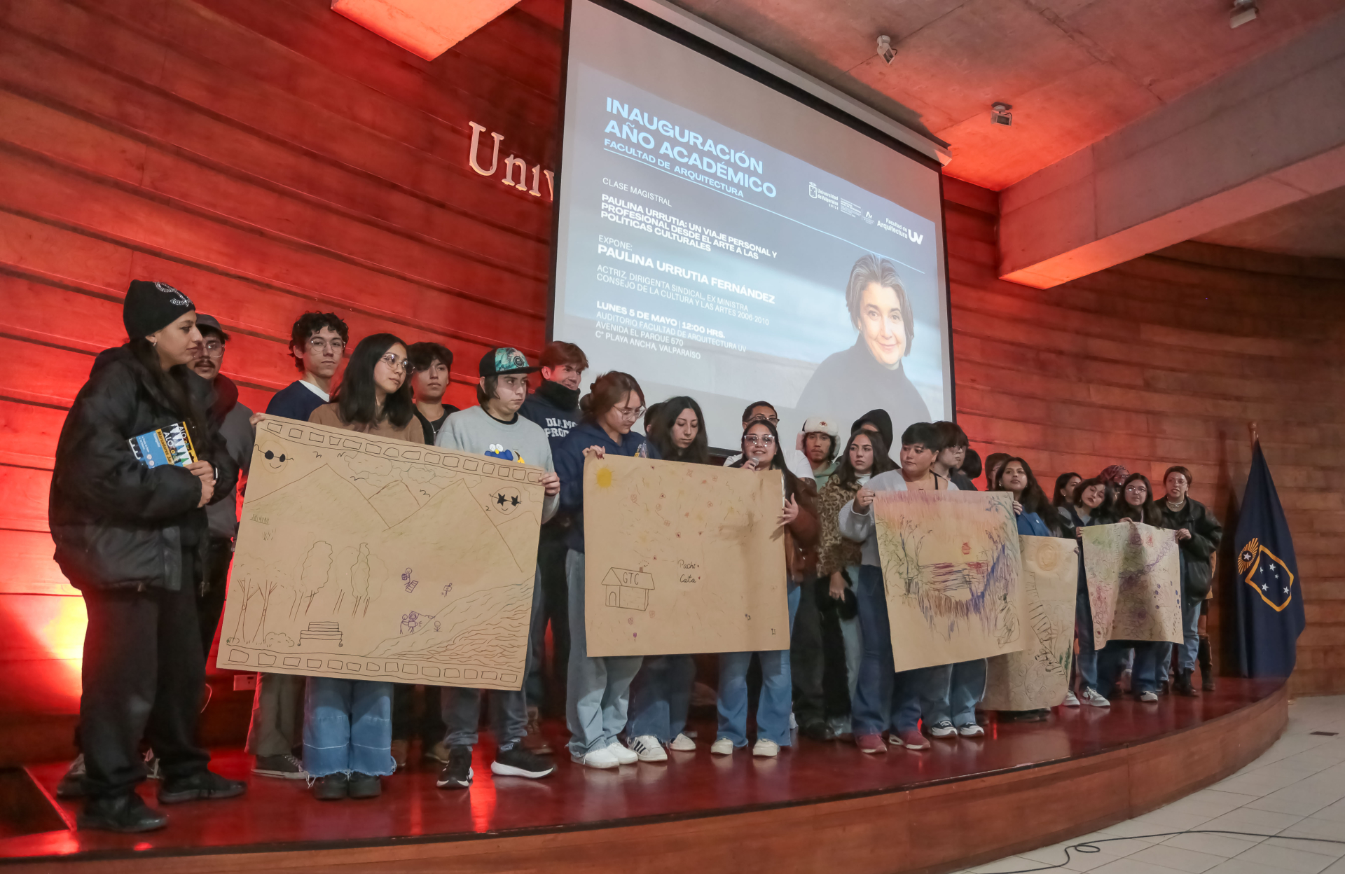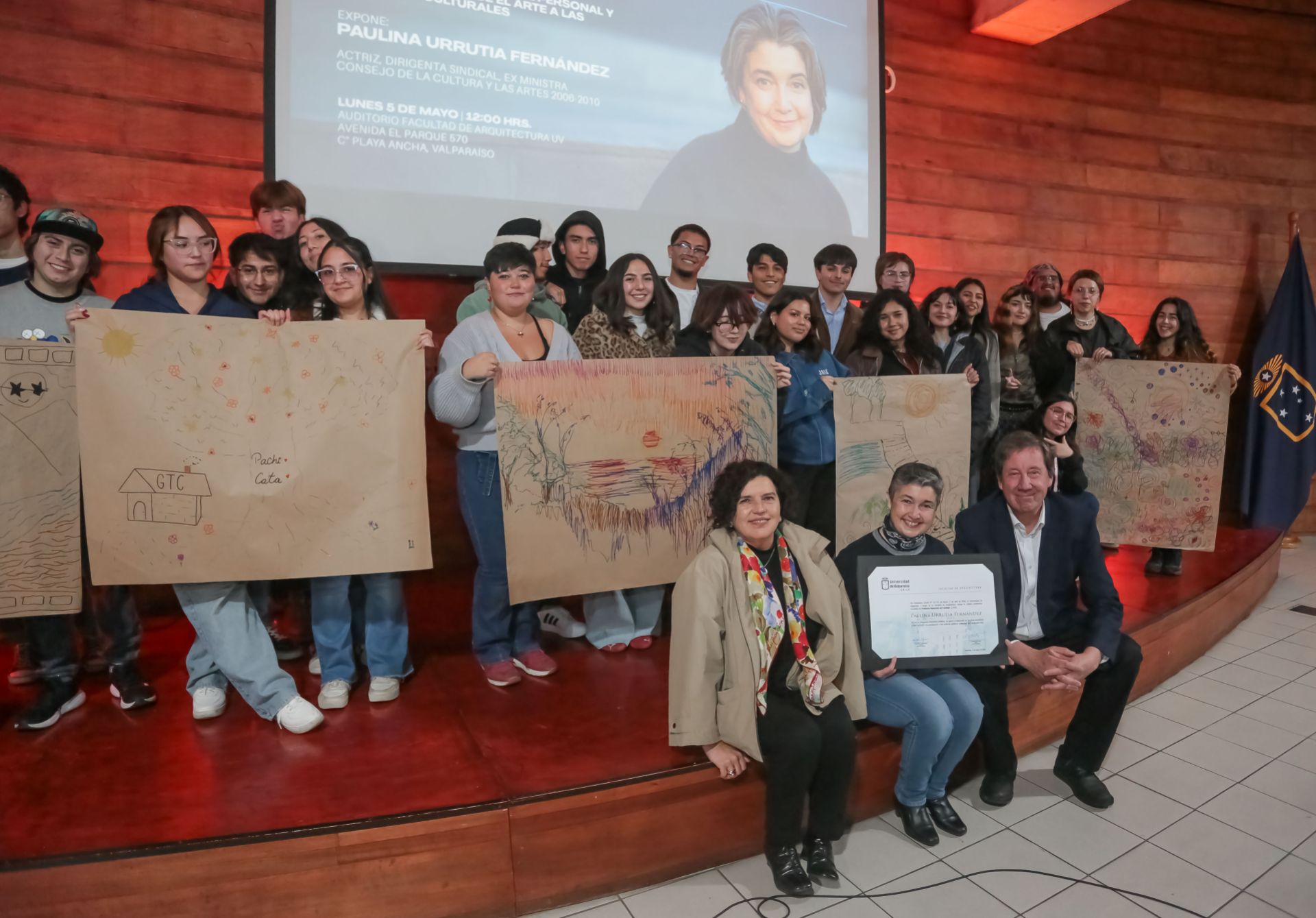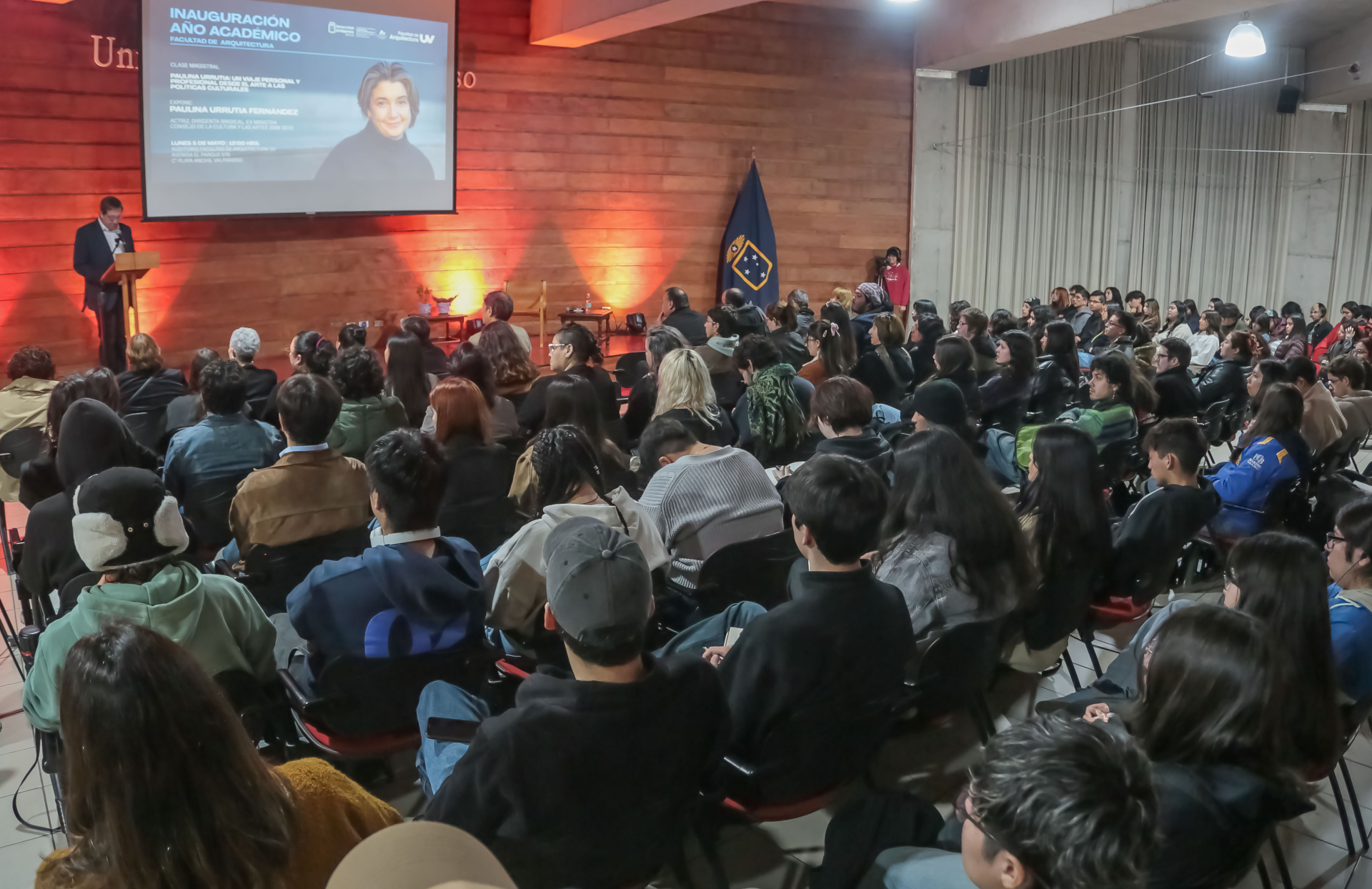 La actriz, académica, dirigente sindical y exministra, Paulina Urrutia, fue la expositora central de la inauguración del Año Académico de la Facultad de Arquitectura de la Universidad de Valparaíso, donde dictó la conferencia “Un viaje personal y profesional desde el arte a las políticas culturales”, y fue distinguida con la calidad de Profesora Honoraria de Facultad.