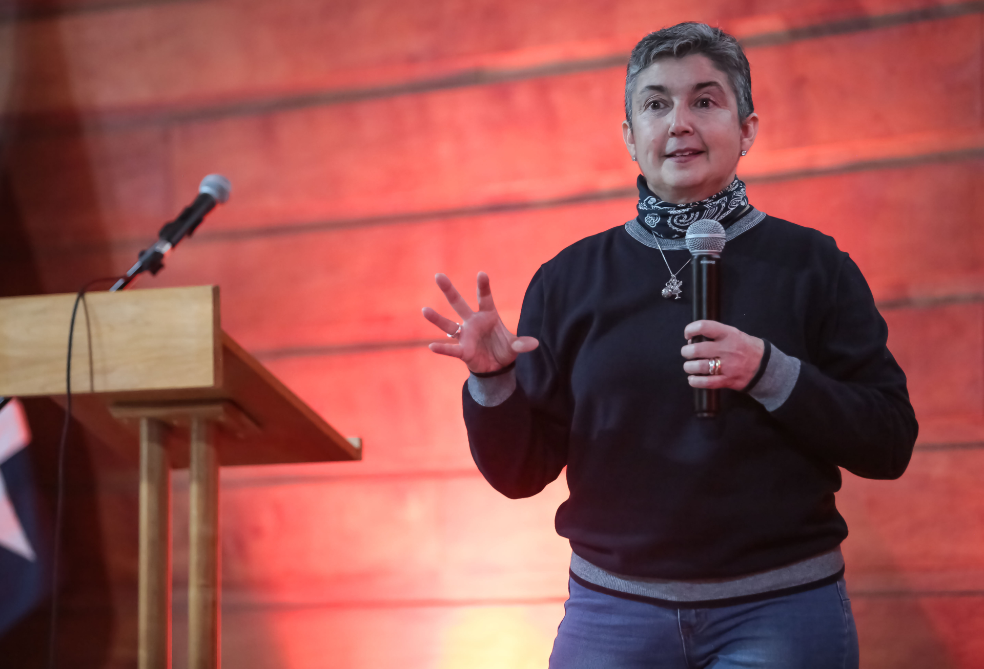 Durante su presentación, frente a un auditorio repleto de autoridades académicas, docentes, estudiantes y funcionarios, realizó un recorrido desde sus primeros acercamientos al teatro, pasando por su fase universitaria, así como por su destacada trayectoria en teatro, cine y televisión, junto con su fase de dirigente y posterior ministra de las Culturas, entre 2006 y 2010.