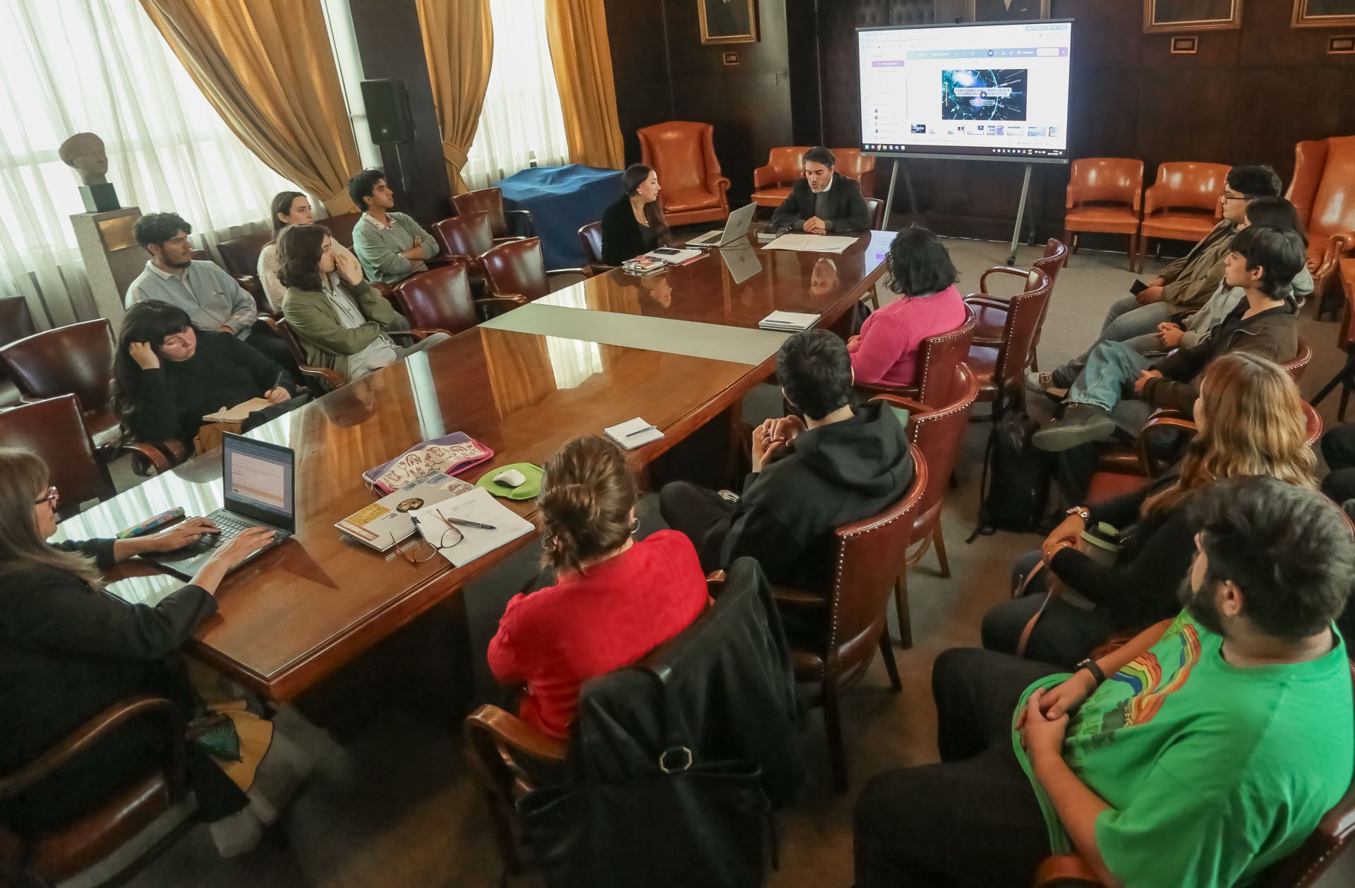 La actividad fue encabezada por el profesor Camilo Arancibia, director del Seminario de Derecho y Cultura, y en ella participaron la presidenta del Departamento de Ciencia General del Derecho, Patricia Reyes, integrantes del Seminario, profesores, profesoras y estudiantes.