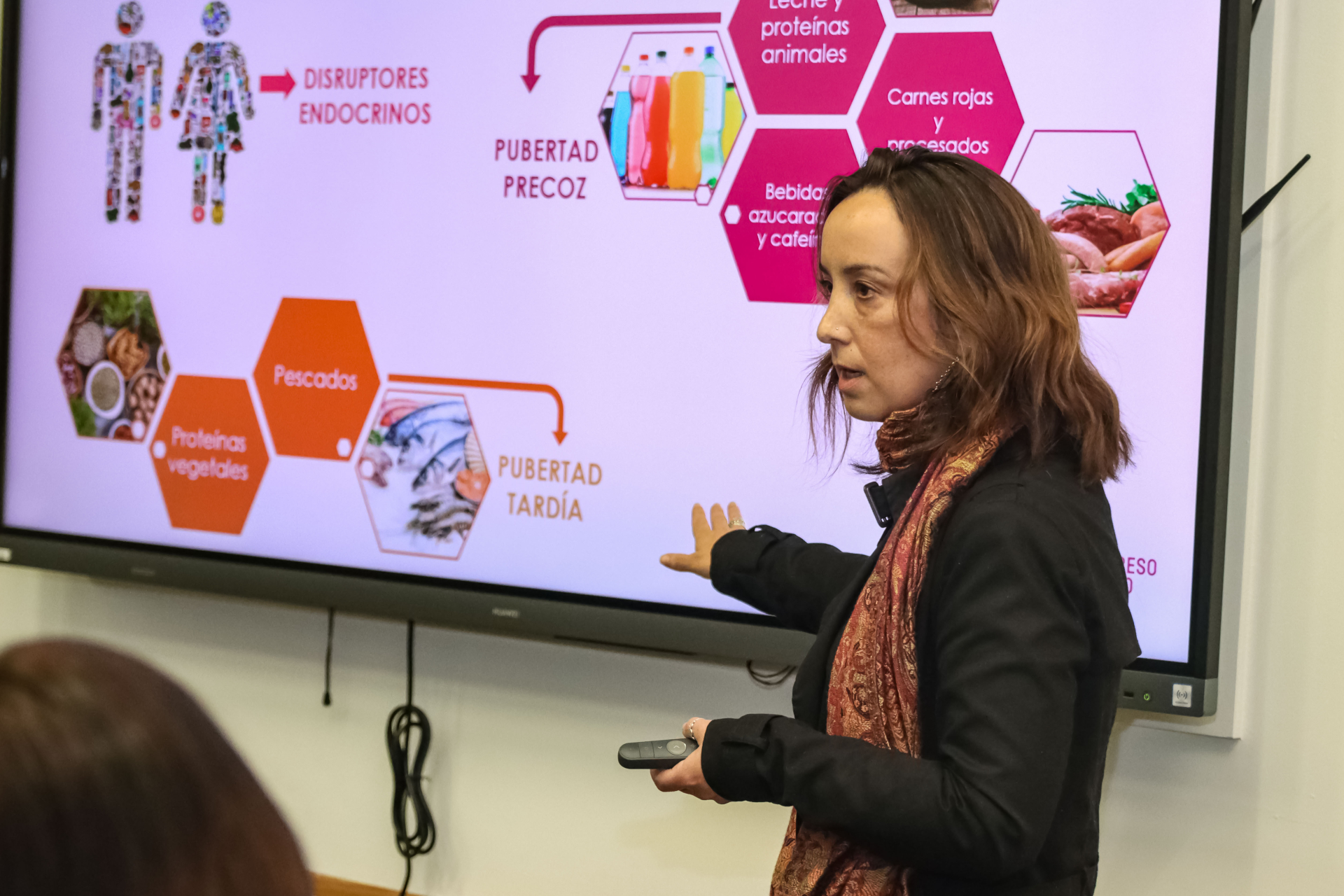 Por la tarde, en el Edificio CIAE se realizó la conferencia “Comer bien, vivir mejor: Cómo el entorno alimentario modela el futuro de los adolescentes”, dictada por la nutricionista Ángela Martínez, doctora en Nutrición y Salud Pública de la Universidad de Sao Paulo, Brasil, magíster en Nutrición y Alimentos con mención en Promoción de la Salud y Prevención de Enfermedades Crónicas asociadas a la Nutrición, INTA de la Universidad de Chile y académica de la Universidad de Valparaíso.