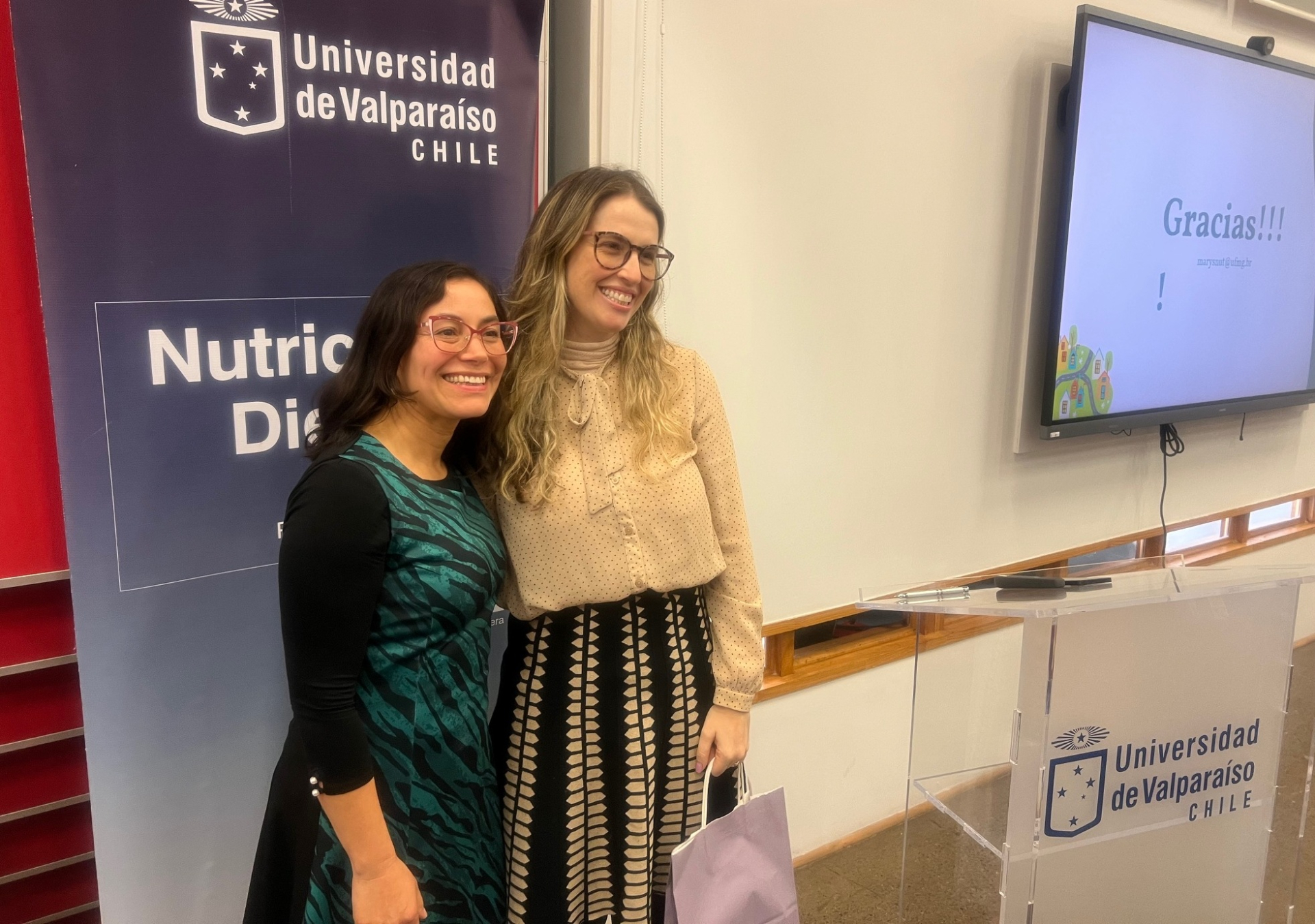 Con la conferencia a la comunidad “Ambientes alimentarios en América Latina: ¿Qué sabemos y qué nos falta por descubrir?”, la doctora Mariana Carvalho de Menezes, académica del Departamento de Nutrición de la escuela de Enfermería de la Universidad Federal de Minas Gerais (Brasil), participa en una intensa agenda de colaboración académica en la Universidad de Valparaíso. Su visita se enmarca en el convenio de movilidad docente impulsado por la Asociación de Universidades del Grupo de Montevideo (AUGM), gracias al cual la investigadora realiza una pasantía de una semana en el Centro de Investigación del Comportamiento Alimentario (CEIC) de la escuela de Nutrición y Dietética de la Facultad de Farmacia UV.