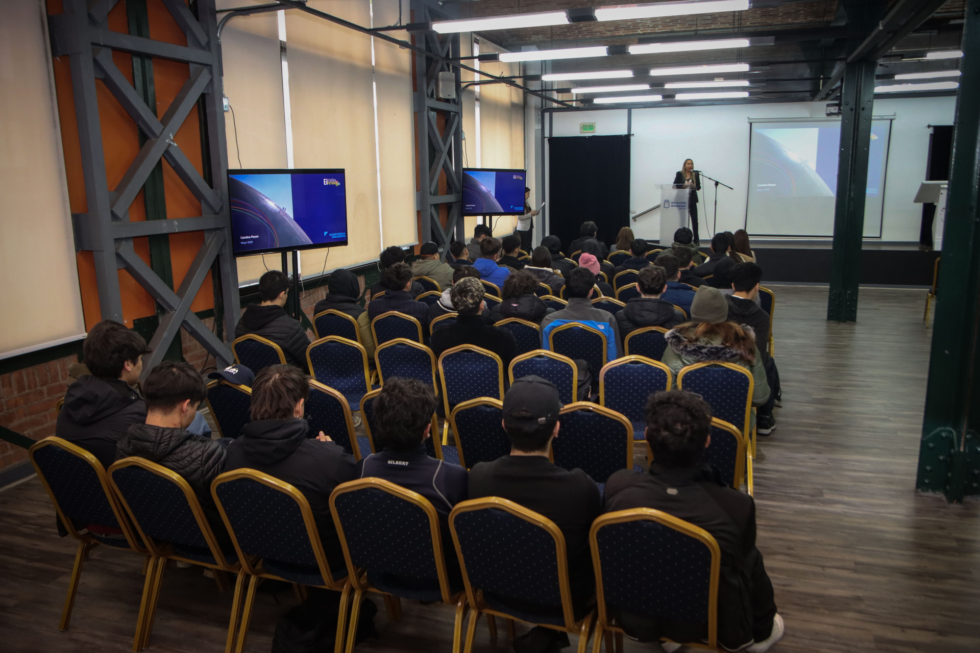 Uno de los mensajes de la expositora a la audiencia fue “solo vengo a decirles lo que me habría gustado escuchar cuando tenía 17 años y entré a la Escuela de Construcción UV: ‘Tranquila, no tengas miedo, lo vas a lograr’”.