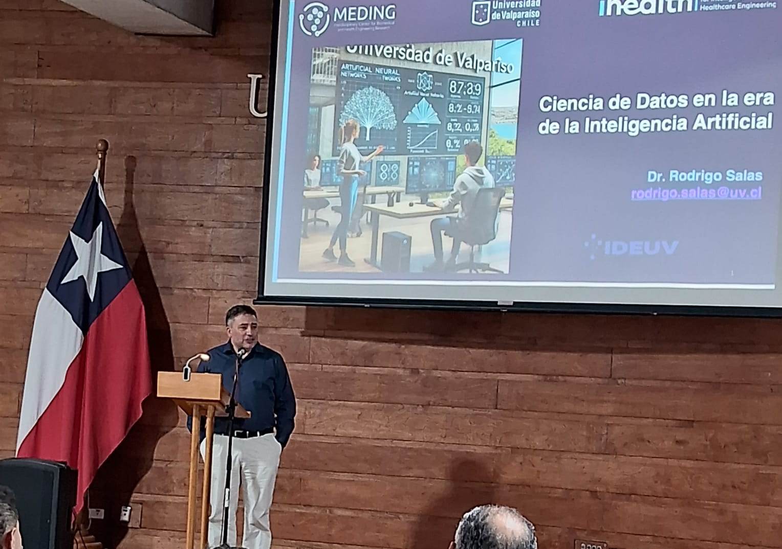 Uno de los momentos más relevantes de la ceremonia fue la conferencia del doctor Rodrigo Salas, quien expuso la clase magistral titulada “Ciencia de datos en la era artificial”. En su presentación, abordó los cambios que la Inteligencia Artificial y el aprendizaje automático están generando en los métodos estadísticos tradicionales, y cómo estos avances reconfiguran el rol del estadístico en distintos ámbitos de aplicación.