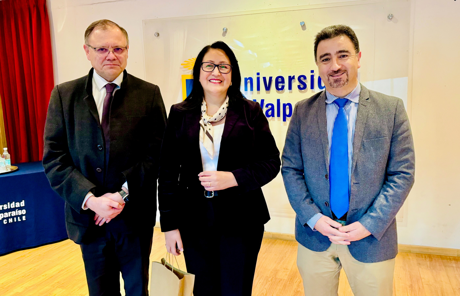 Dorothy Pérez realizó una charla magistral en el Campus Santiago de la Universidad de Valparaíso en la que participó el rector Osvaldo Corrales.