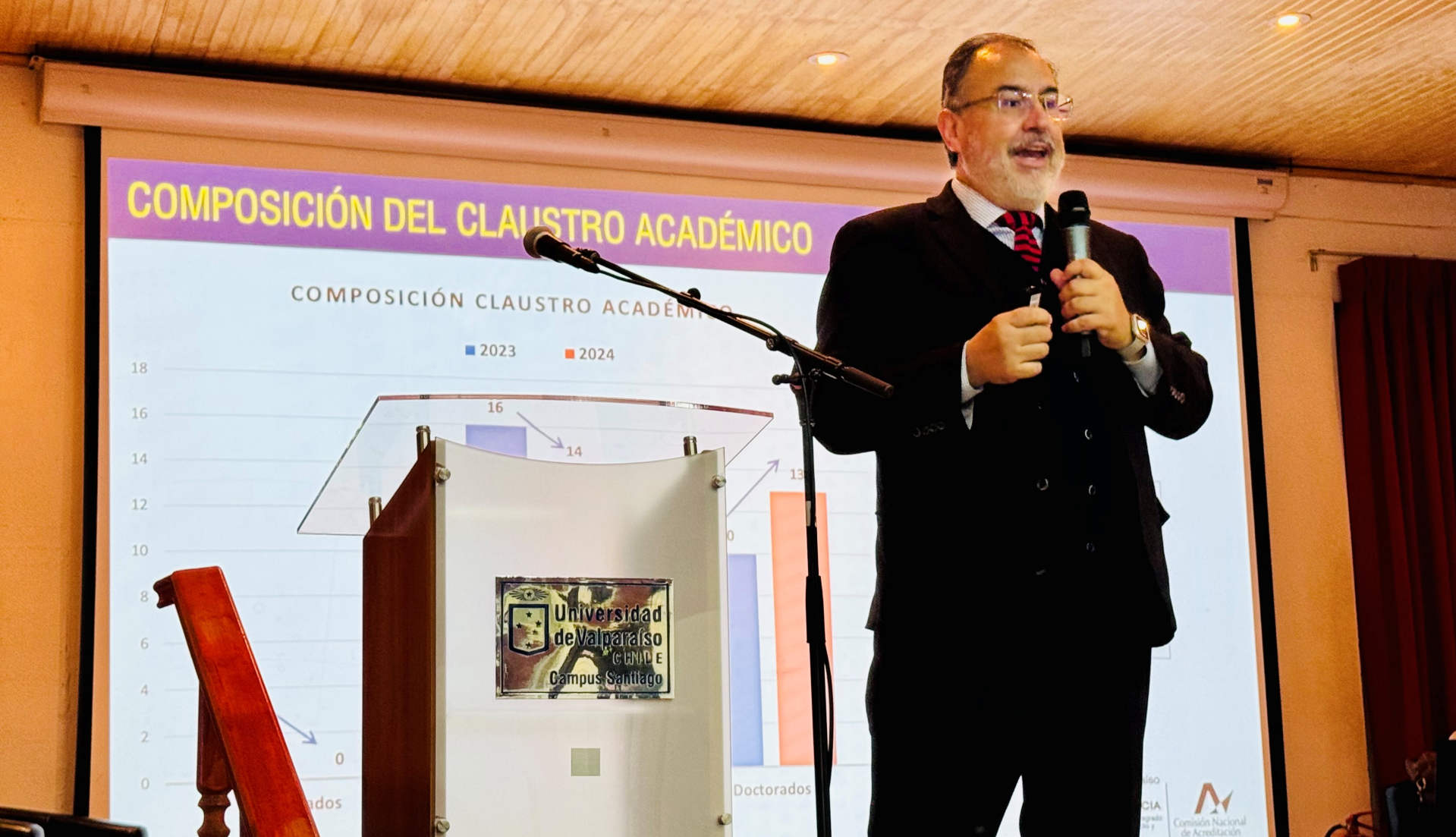 La Escuela de Ingeniería Industrial de la Universidad de Valparaíso realizó su ceremonia de inicio del año académico 2025 en el teatro del Campus Santiago, en un evento que contó con palabras del director de la Escuela, Daniel Miranda, y la exposición de la experta en neurociencias, Aída Leyton, quien presentó la charla magistral “Catalizadores cerebrales: Neurociencia aplicada al éxito en ingeniería”. Al evento asistió el jefe de carrera en el recinto capitalino, José Irrazabal, académicos, académicas y estudiantes de distintos cursos.