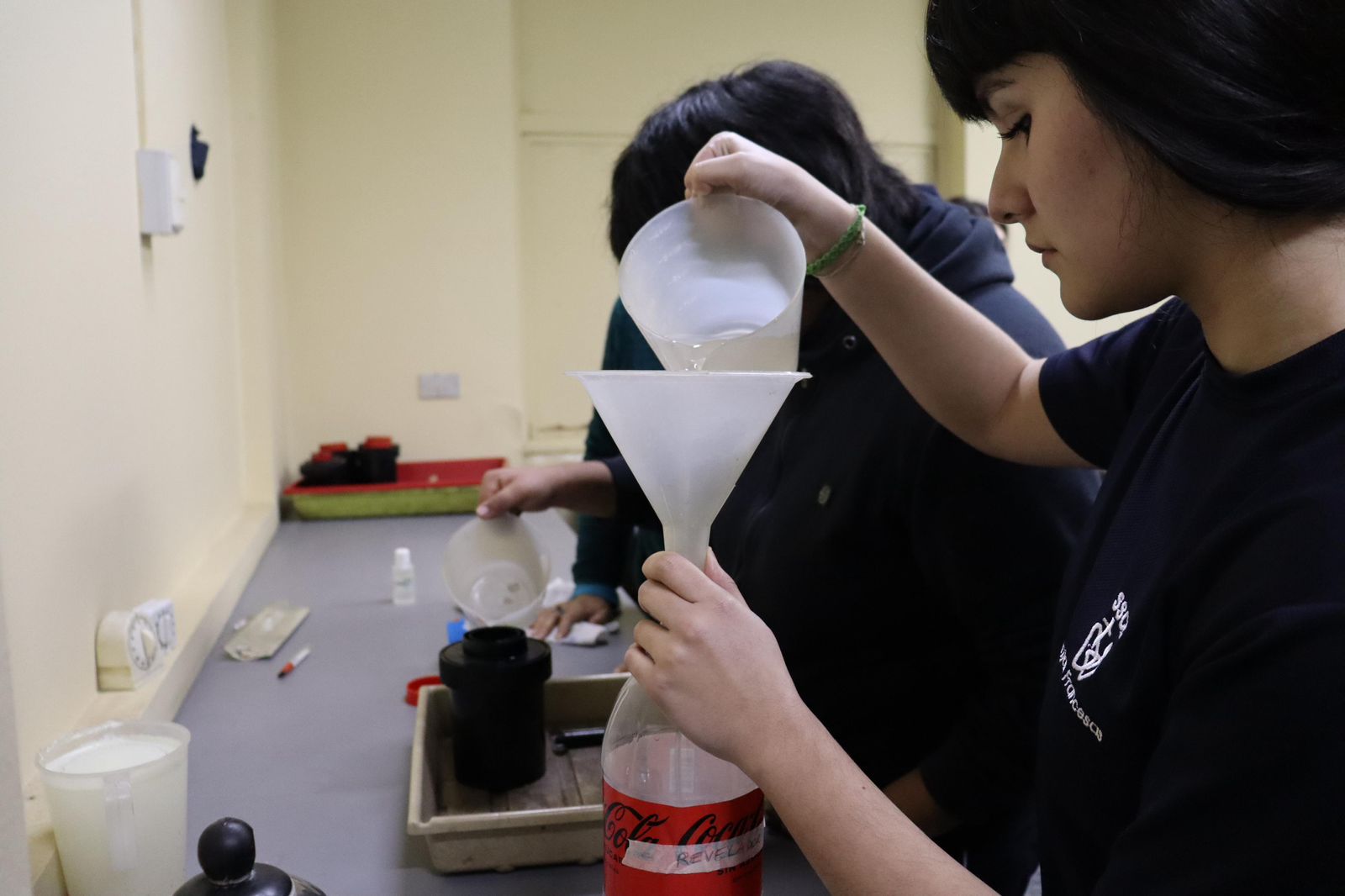 En dos sesiones, los estudiantes del cuarto año medio del electivo Audiovisual del Colegio Sagrados Corazones de Viña del Mar, Monjas Francesas, se encuentran conociendo los detalles de la fotografía y revelado análogo en los laboratorios de la Escuela de Diseño de la Universidad de Valparaíso, a cargo de la profesora Flavia Michell.