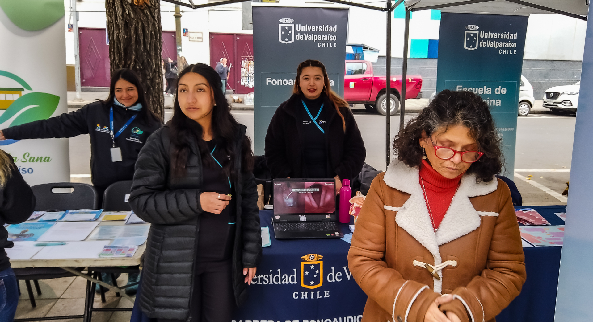 Gerópolis y las carreras de Fonoaudiología, Medicina, Obstetricia y Puericultura, Tecnología Médica, Odontología y Kinesiología de la Universidad de Valparaíso participaron en una nueva edición de la actividad ferial Territorio UV, que en esta oportunidad se realizó en la plaza Victoria, en conjunto con el Servicio de Salud Valparaíso San Antonio, en el marco de la campaña “Menos humo, mejor vida”.