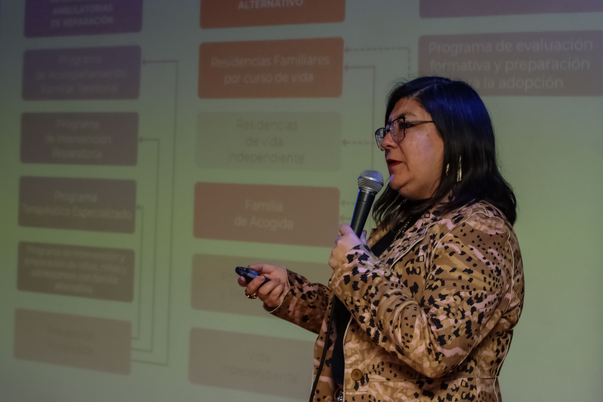 En la oportunidad, Carla Oyarzún expuso el tema “Situación general de la región respecto a Déficit de Familias de Acogida Externas, y situación de niñeces que se encuentran en residencias de lactantes. Desafíos de la Política Pública en el proceso de aumento y captación de familias de acogida”. Allí se refirió al marco legal en Chile y a sus modificaciones en los últimos años, entregó cifras relevantes del área y explicó el proceso para convertirse en familia de acogida.