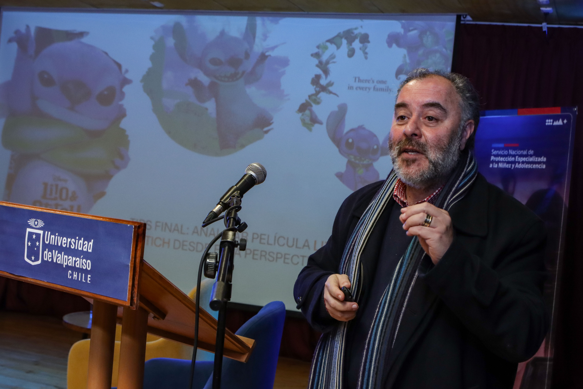 Por su parte, el decano Gonzalo Lira presentó la ponencia “Efectos de la institucionalización en niñeces (trauma complejo y consecuencias de la institucionalización en los procesos de apego en niñeces)”. El académico explicó los procesos psicológicos que implican los traumas que niños, niñas y adolescentes enfrentan en contextos vulnerables, las experiencias adversas infantiles (EAI) y el modo de abordarlas, con miras a fomentar el apego seguro y reconfigurar sus expectativas emocionales. Al cierre de su presentación, a modo de tip, recomendó ver la película "Lilo y Stitch".