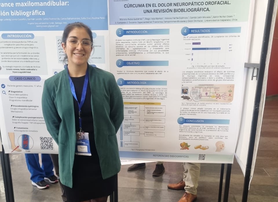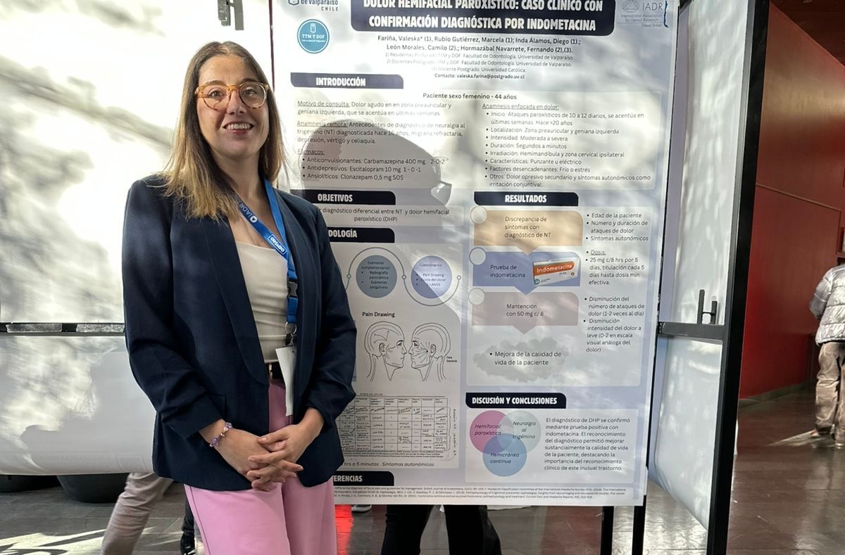 Además, el equipo del Programa de Trastornos Temporomandibulares (TTM) y Dolor Orofacial (DOF) de la Universidad de Valparaíso obtuvo el primer lugar en su categoría con el trabajo “Dolor hemifacial paroxístico: caso clínico con confirmación diagnóstica por indometacina”, presentado por la doctora Valeska Fariña. La investigación fue realizada en conjunto con los doctores Marcela Rubio y Diego Inda, también residentes del programa, y con la colaboración de los académicos Fernando Hormazábal y Camilo León. La evaluación estuvo a cargo del decano de la Facultad de Odontología de la Universidad San Sebastián, doctor Sergio Castro, y la distinción fue otorgada por la Sociedad Chilena de Trastornos Temporomandibulares y Dolor Orofacial, IADR Chile.
