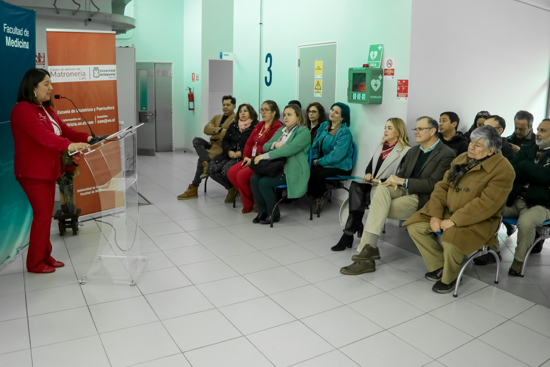 Al acto de inauguración del nuevo Centro de Atención de Matronería asistieron además el decano de la Facultad de Medicina, Antonio Orellana; la jefa de la carrera de Obstetricia y Puericultura, Alejandra Muñoz, y la coordinadora de Postítulo y Postgrado de ese plantel, Ingrid Vargas, entre otras autoridades académicas, docentes y representantes de unidades administrativas.