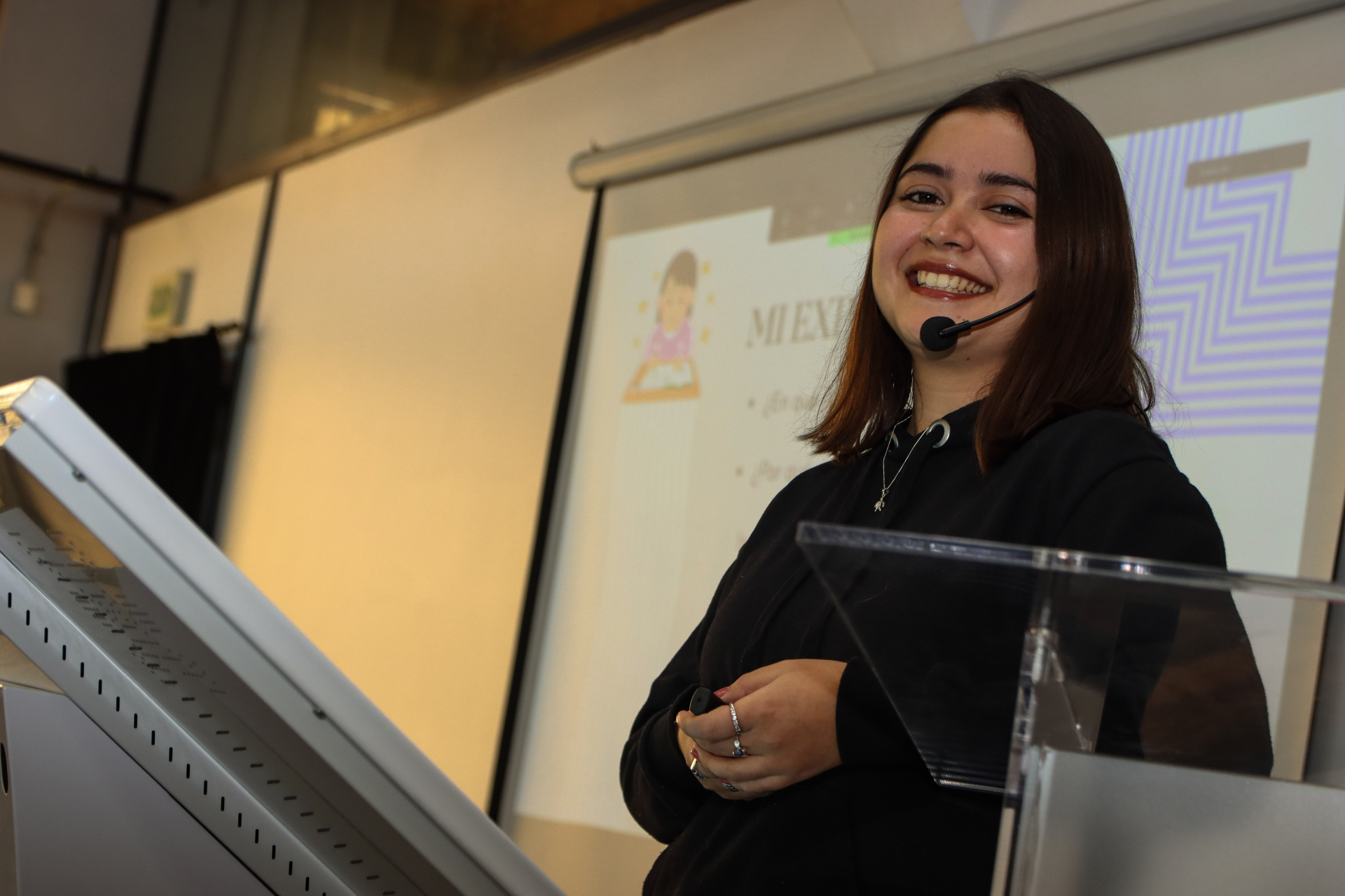 Junto con dar cuenta de los principales aspectos de su trabajo de investigación, expuso aspectos relevantes de su vida como estudiante, la decisión de ingresar a una carrera como Ingeniería Civil Matemática y las proyecciones de su vida profesional.