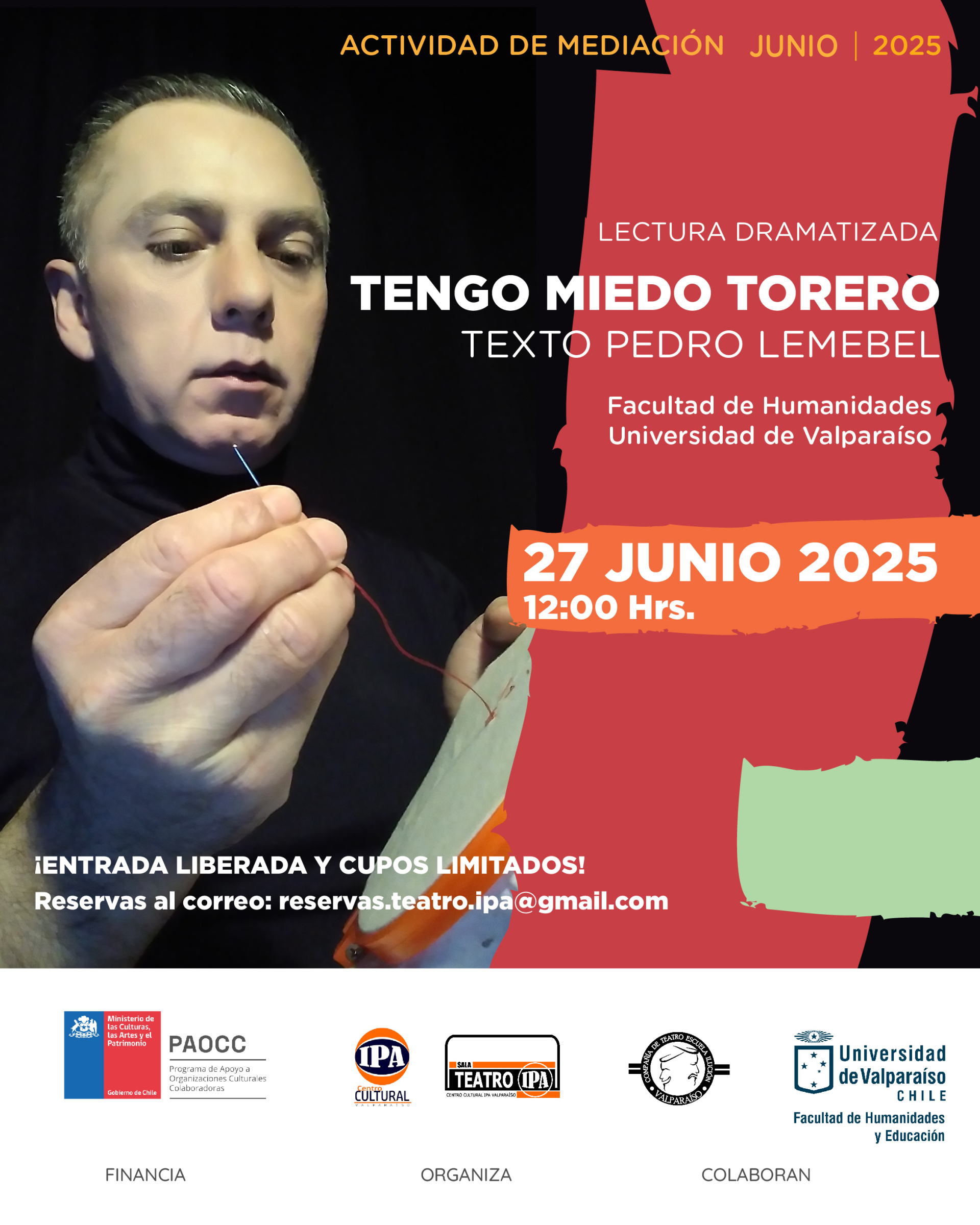 Para conmemorar esta fecha, la Facultad de Humanidades y Educación de la Universidad de Valparaíso, en conjunto con el Centro Cultural IPA y el Departamento de Mujeres y Diversidades de la Municipalidad de Valparaíso, realizarán este día viernes 27 de junio, a las 12:00 horas, una actividad que mezclará la literatura, el teatro y el rescate de la memoria. Se trata de la lectura dramatizada de “Tengo miedo torero”, obra del escritor y cronista chileno Pedro Lemebel, cuya adaptación está a cargo de la compañía Teatro IluCión, y que será posible gracias a una alianza entre el Centro Cultural IPA de Valparaíso y la referida unidad académica.