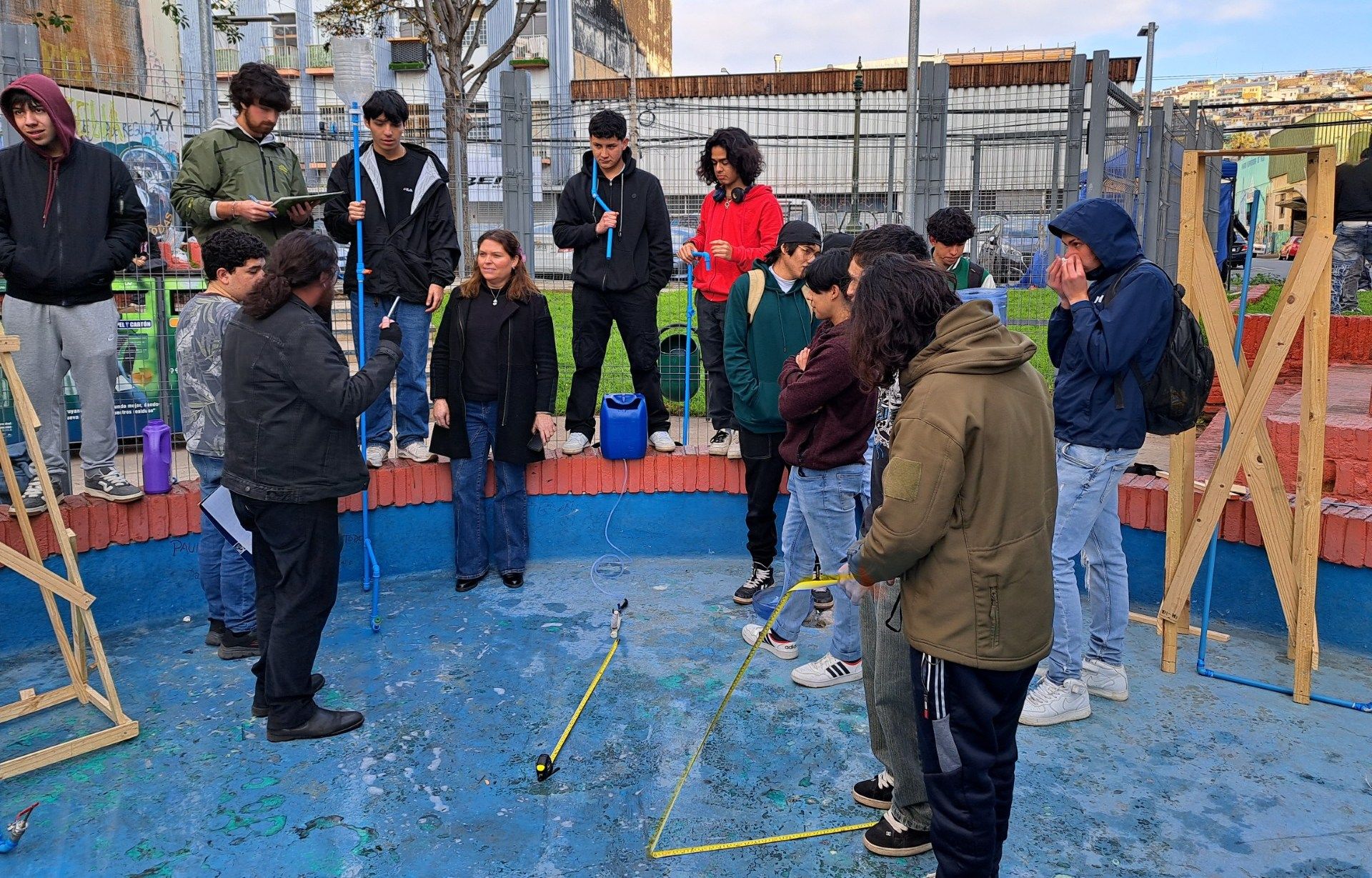 Una vez más la pileta frente a la Facultad de Ingeniería UV, ubicada en la calle General Cruz 222, se llenó de estudiantes de primer año, quienes debieron sortear el ya clásico Desafío de Hidráulica.