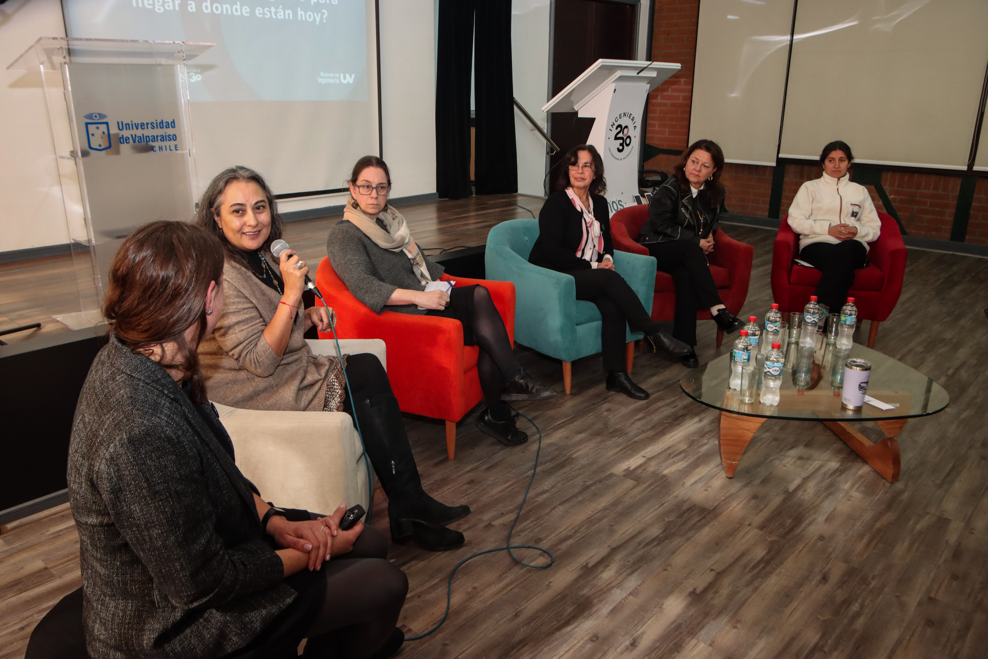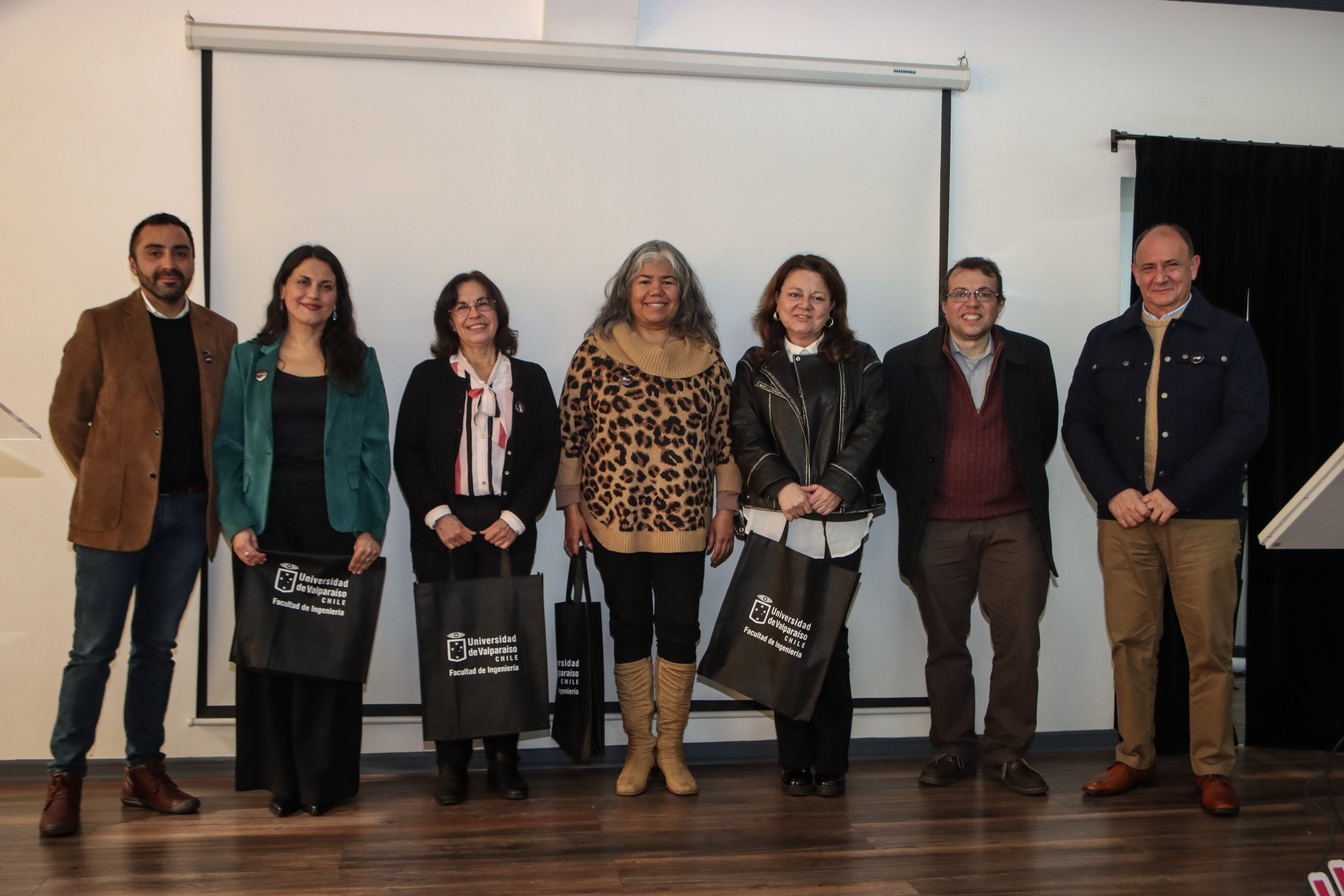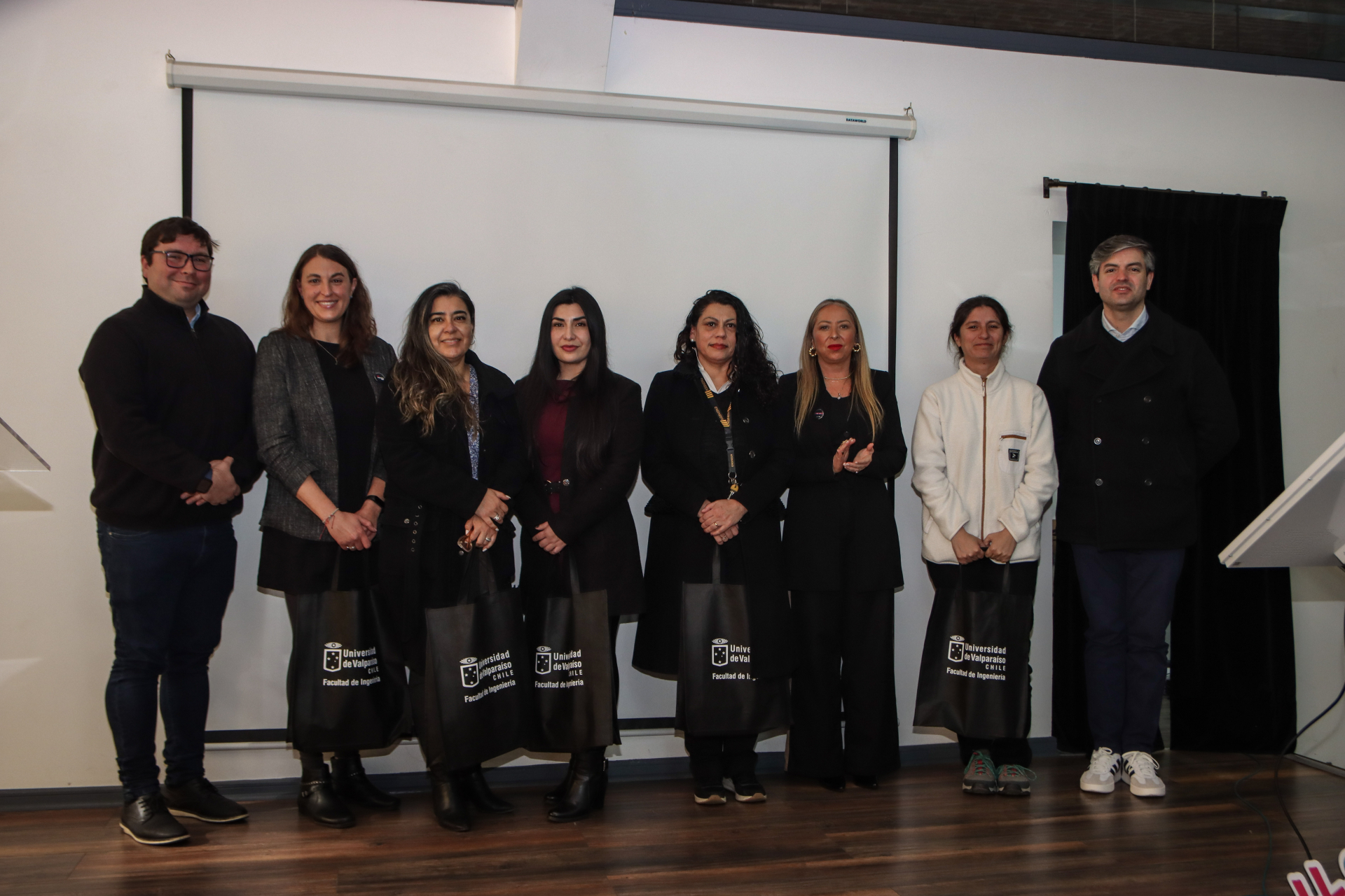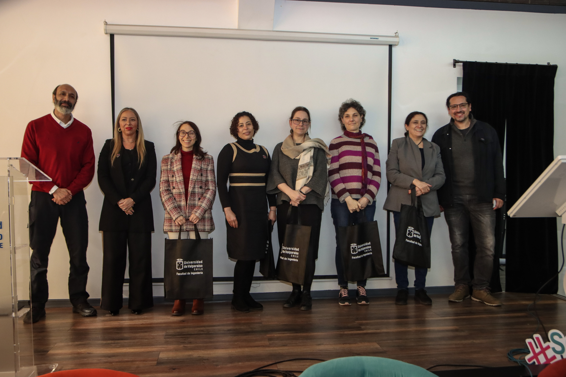 Durante la jornada se desarrolló el conversatorio "Reconociendo el impacto y la trayectoria de las académicas UV en la ingeniería", con la participación de Patricia Martínez, de Ingeniería en Construcción; Steren Chabert, de Ingeniería Civil Biomédica; Marta Barría, de Ingeniería Civil Informática; Catalina Aguirre, de Ingeniería Civil Oceánica, y Lorena Álvarez, de Ingeniería Civil Ambiental, moderado por Julia Wiener.