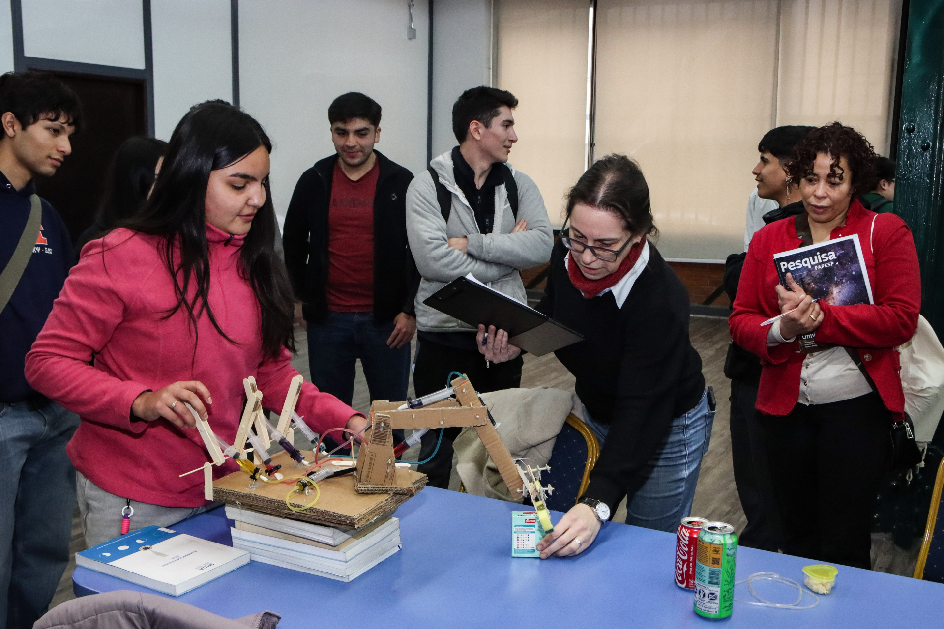 Steren Chabert, académica a cargo de la actividad junto a su colega Débora Buendía, señala que "los alumnos diseñaron el sistema y lo implementaron, buscando soluciones para contrarrestar la gravedad y lograr levantar el máximo de peso posible”.