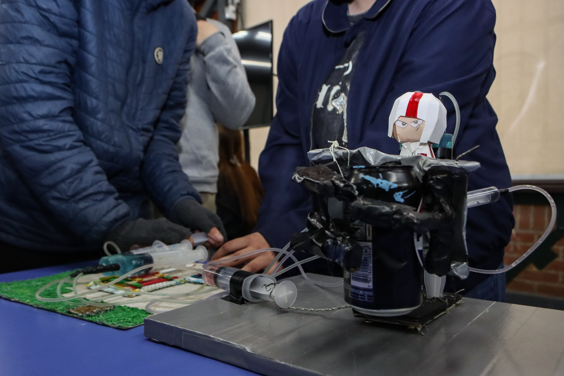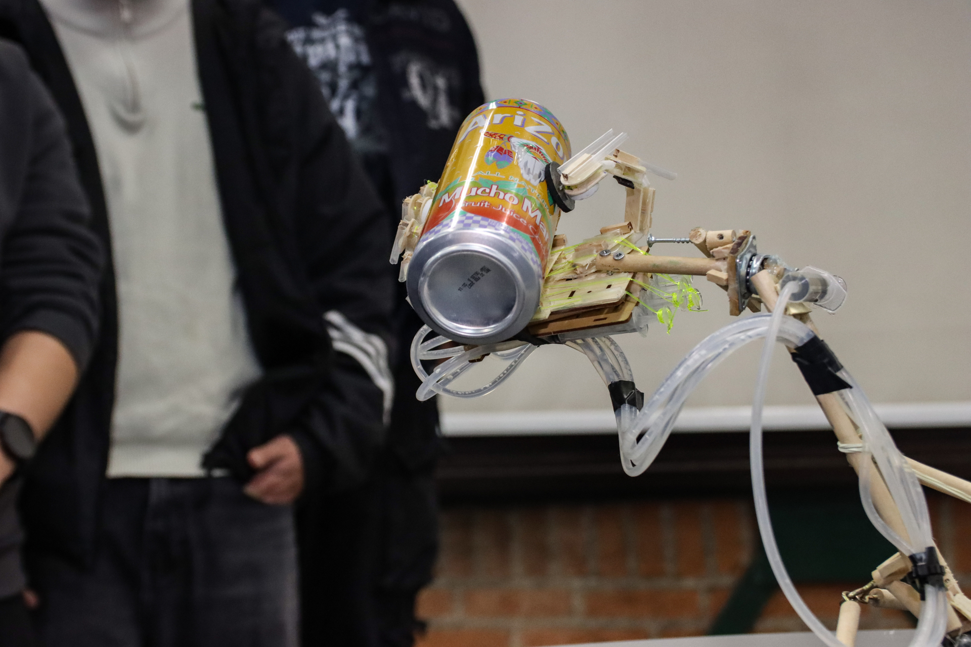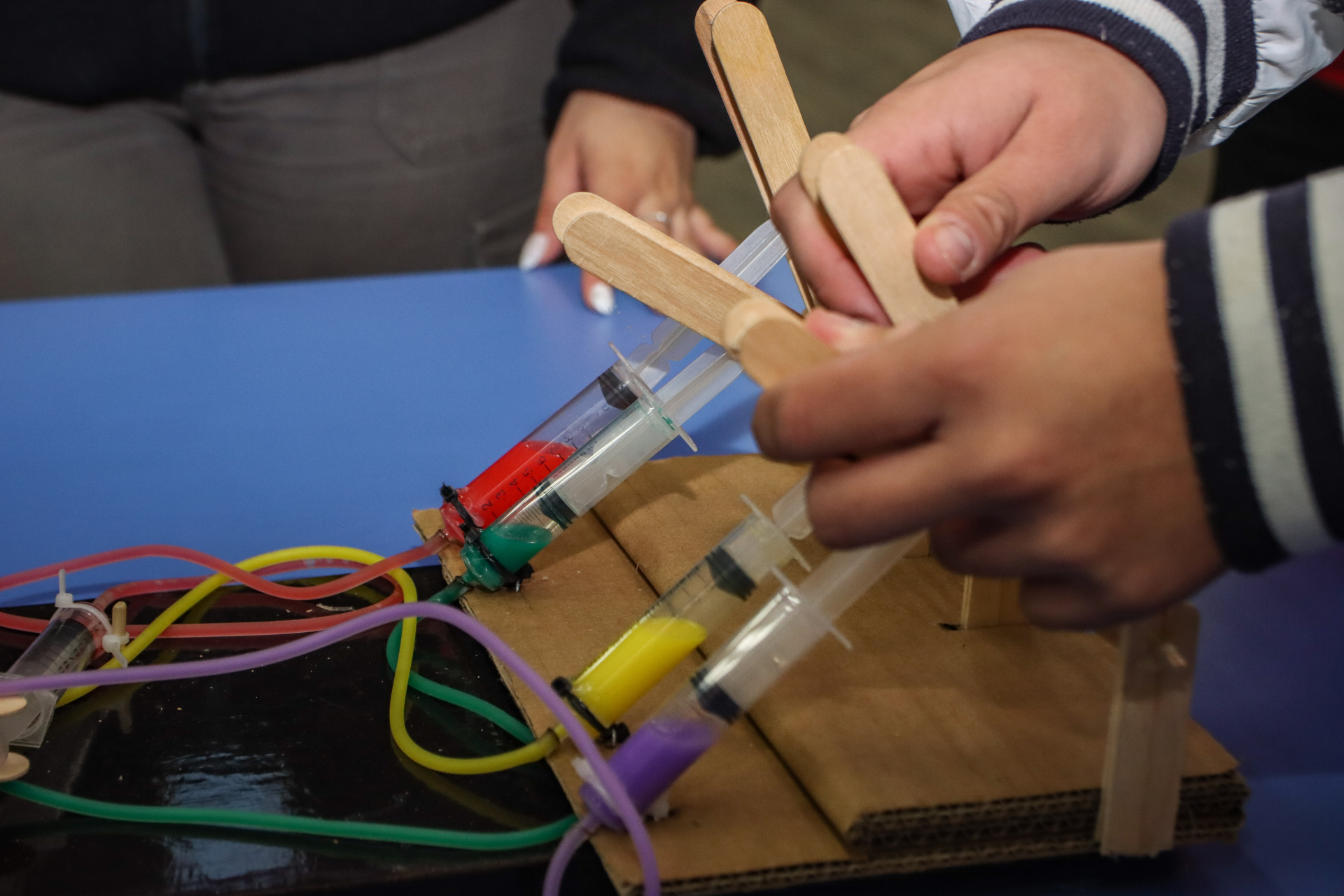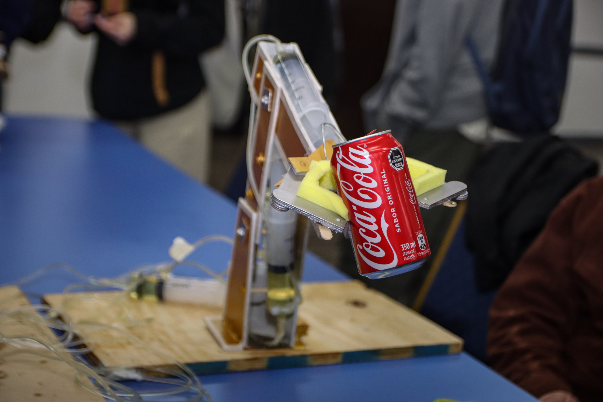 Levantar un objeto verticalmente, desplazarlo y dejarlo en forma precisa en una ubicación por medio de un brazo controlado de forma hidráulica, construido en base a materiales caseros. Esos fueron los requerimientos del Desafío de Ingeniería para estudiantes de primer año de la carrera de Ingeniería Civil Biomédica.