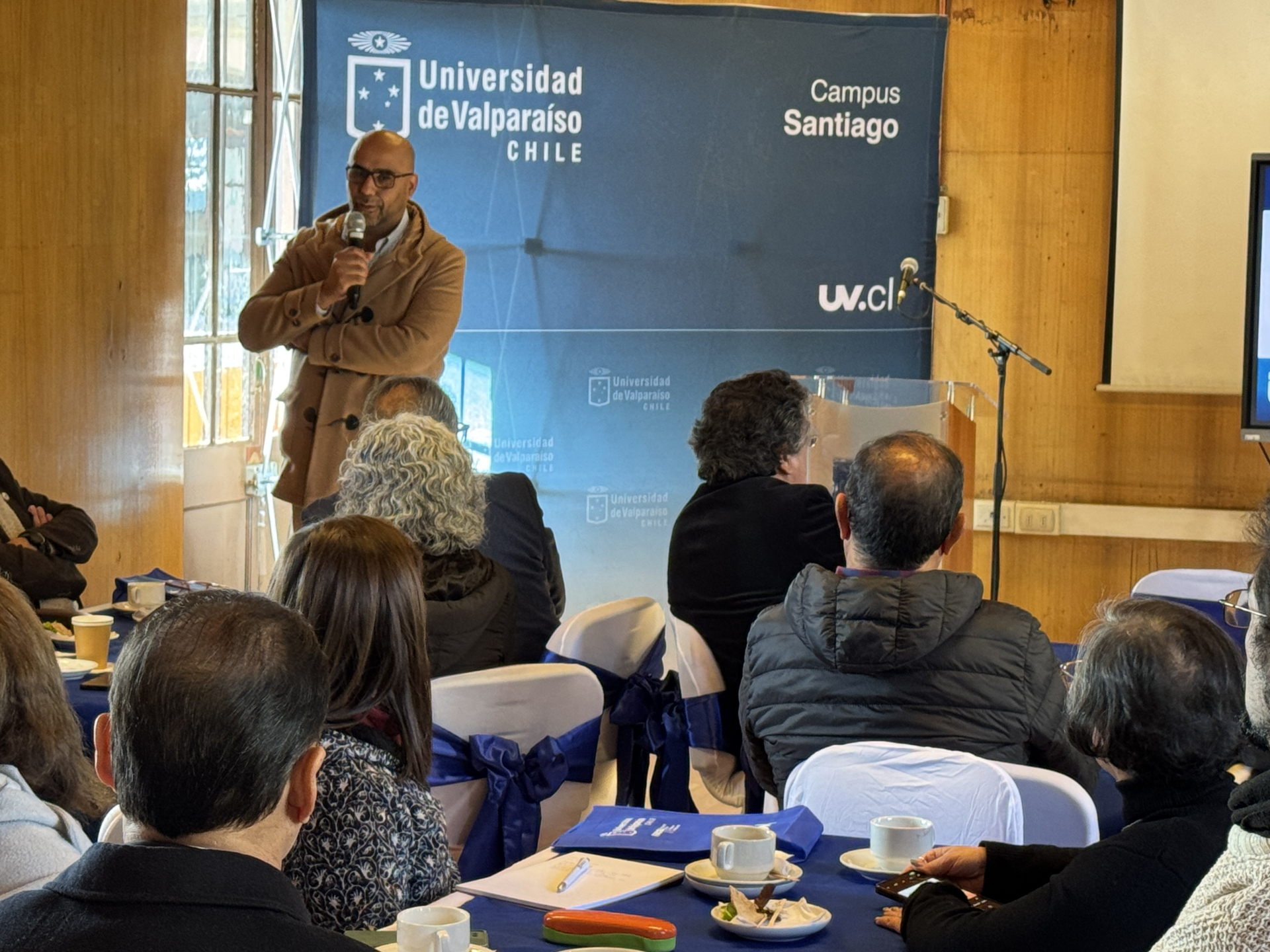 En el marco del desayuno informativo, que se desarrolló en la sala de lectura del Campus Santiago, dirigieron palabras a los y las asistentes el vicerrector Becerra, el director Vera y el decano Del Barrio, y expusieron la vicedecana, Marcela Fernández, sobre el perfil de las carreras de FACEA, y el académico de Ingeniería Civil Industrial, Mauro Grossi, sobre los desafíos de esta disciplina. Como maestro de ceremonias ofició el coordinador de Vinculación con el Medio de FACEA, Gonzalo Luna.
