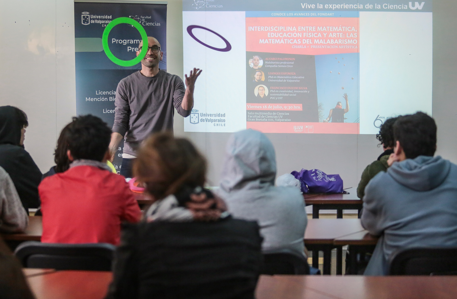 La propuesta no se queda en la teoría. Recientemente, el equipo presentó los avances del proyecto en la Facultad de Ciencias de la Universidad de Valparaíso, donde más de treinta estudiantes del Colegio Montessori de Valparaíso participaron en una actividad práctica y presenciaron una muestra de malabarismo.
