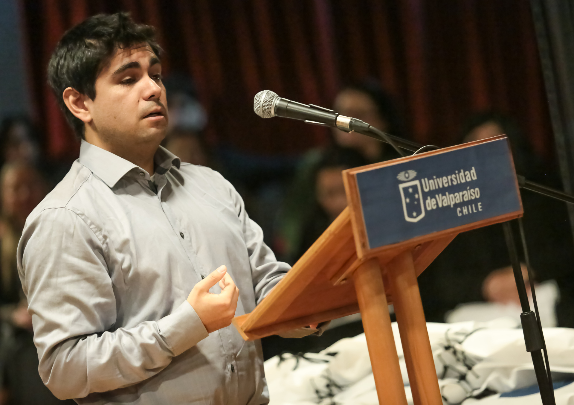 También se dirigió a las y los presentes Juan Chamorro, estudiante de Química y Farmacia, embajador UV durante el año 2024 y quien estuvo en la Universidad de Tours, en Francia. El joven compartió su experiencia y entregó consejos a quienes iniciarán su movilidad, enfatizando la calidad de la formación profesional que cada uno de ellos tiene, y la importancia de conocer a fondo el lugar en el que vivirán mientras dure el intercambio.