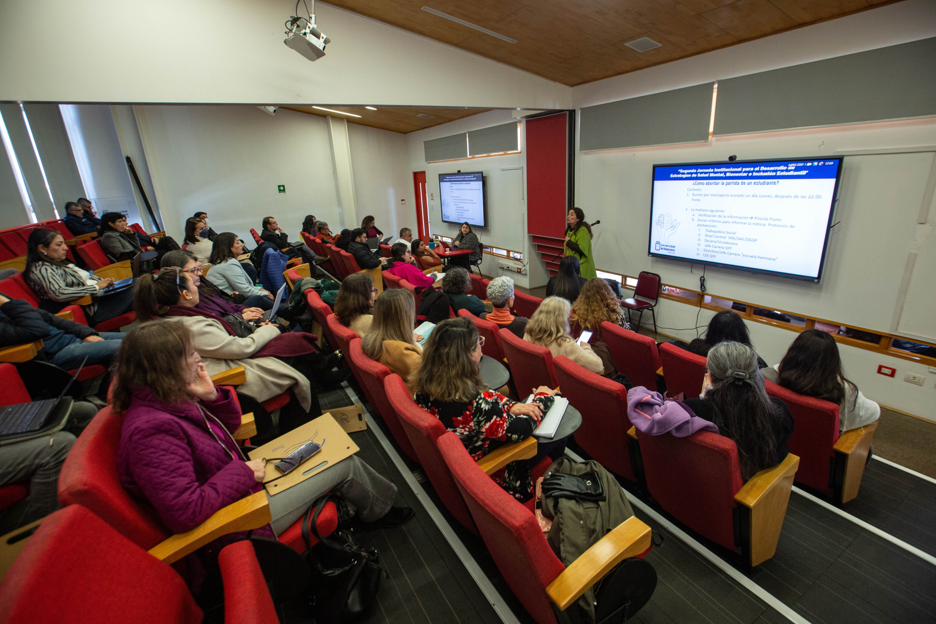 La iniciativa tuvo una primera sesión dirigida a directores de escuela y jefes de carrera, y una segunda orientada a administrativas y administrativos de unidades académicas, bibliotecas y comités paritarios. Tal como lo explica la directora de la DAE, Pierina Penna, "se trata de una instancia para reflexionar sobre las temáticas que afectan a los estudiantes que han ido en aumento, realidad que hemos podido constatar”.