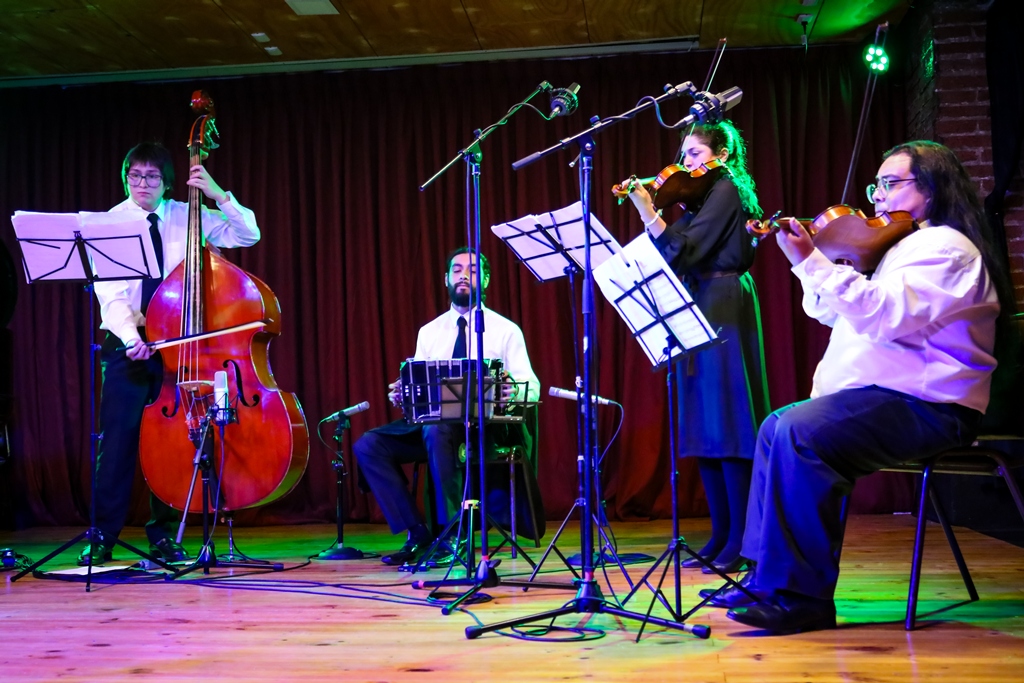 Así se expresa Abel Gallardo, organizador del Ciclo “Tangos en el Puerto”, cuya tercera versión se está desarrollando en la mencionada sala universitaria, con tres sesiones a cargo de agrupaciones locales. El primer recital, que se realizó el 25 de junio, fue ofrecido por la orquesta típica Chávez/Riffo, integrada por Juan Carlos Riffo (violín), Felipe Chávez Pinto (bandoneón), Patricia Escobar (piano), Beatriz Grantubia (violín) y Kollam Treuquil (contrabajo)a, acompañados en voces por Joyce Macasar y Vico Vásquez.
