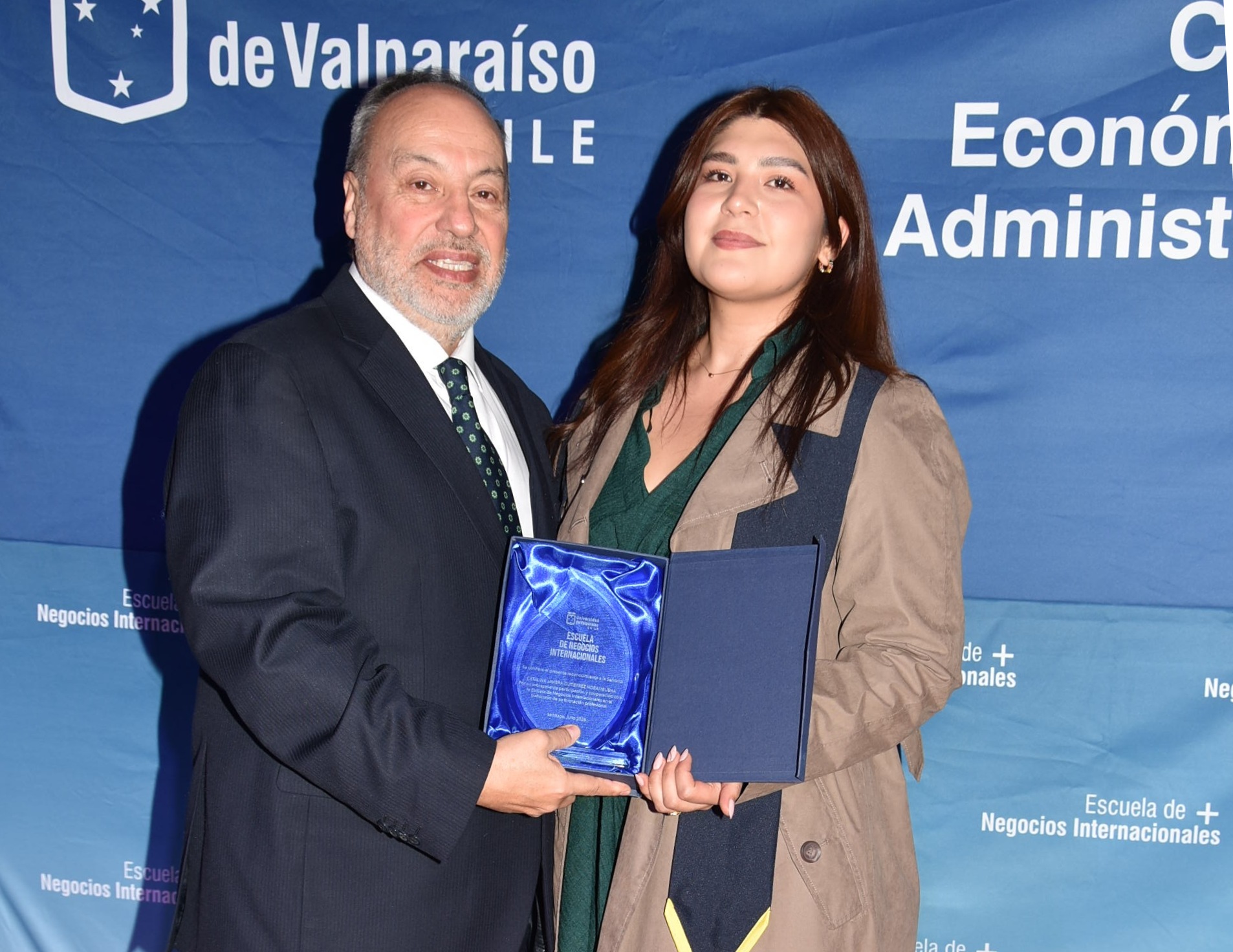 Presidieron el evento la vicedecana de la Facultad de Ciencias Económicas y Administrativas (FACEA), Marcela Fernández, y el director de la Escuela de Negocios Internacionales, Lisardo Gómez. En tanto que entregaron los diplomas, en este mismo orden, Víctor López e Ivonne Lobos, y las jefas de carrera en los campus Santiago y Viña del Mar, Daniella de Luca y Adriana Latorre, respectivamente.