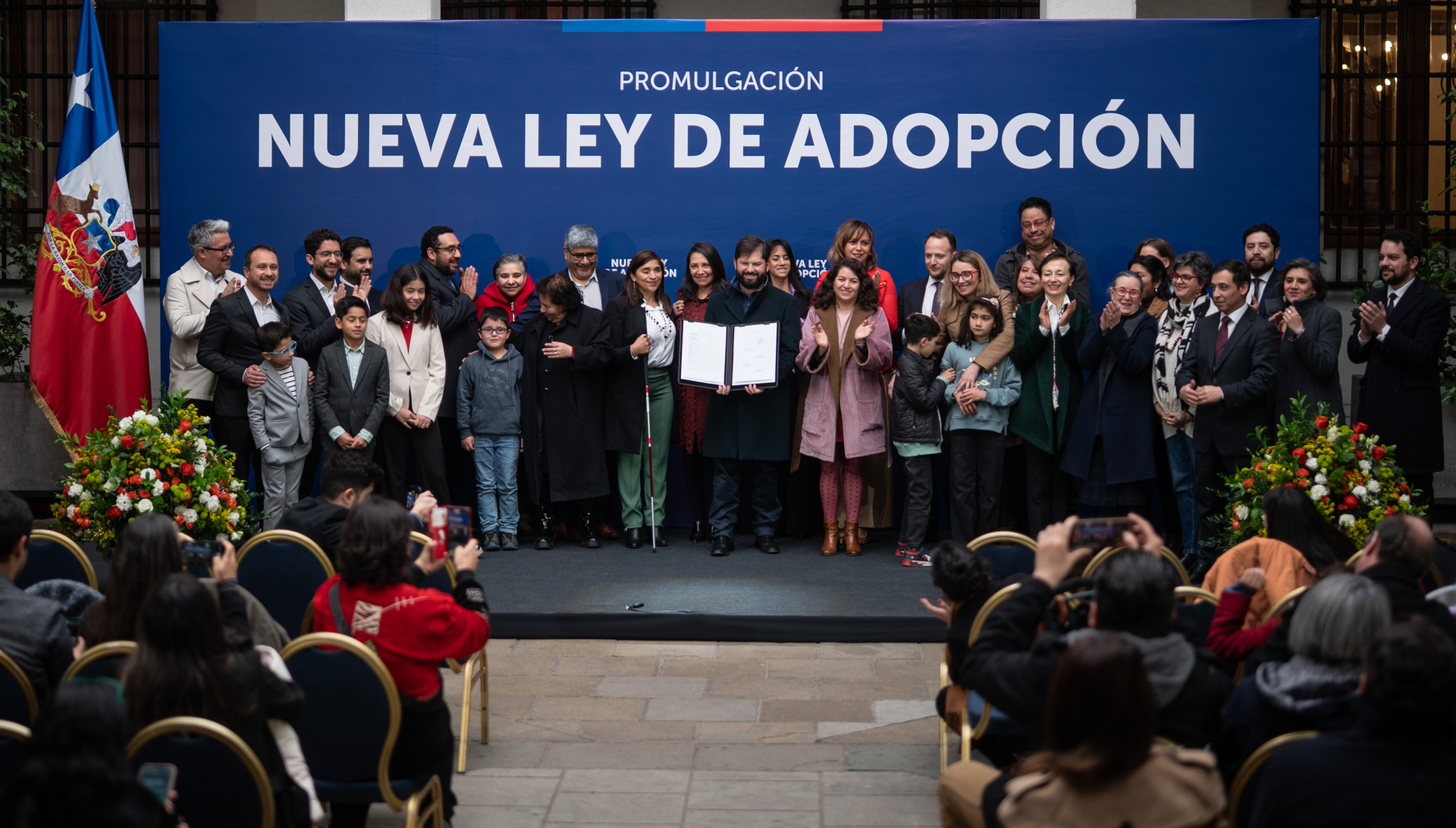 La invitación al evento fue cursada por parte de la Presidencia de la República y el Ministerio de Desarrollo Social y Familia, y en él participaron además la presidenta subrogante de la Corte Suprema, senadoras, senadores, diputados, diputadas, ministros, ministras, el director nacional del Servicio Mejor Niñez, el defensor de la Niñez, la representante de Unicef en Chile y representantes de organizaciones de adopción, así como niños, niñas y sus familias.