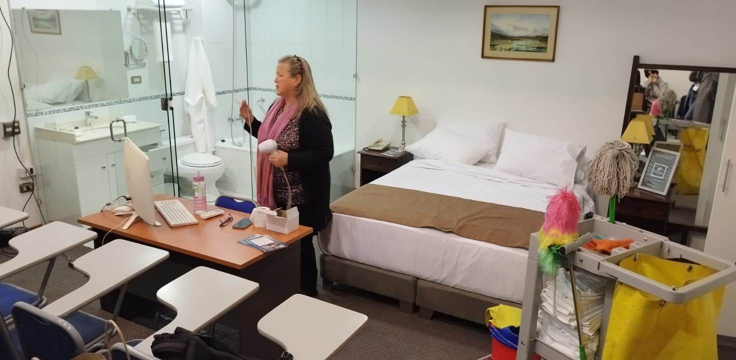 Es así como el grupo de estudiantes pudo acceder a la clase “Gestión de alojamientos”, que dictó la académica Isabel Wichmann, en la que participaron activamente en la gestión de habitaciones de hoteles, pasando desde el orden y el aseo hasta la reserva y administración. Asimismo, tomaron parte en la clase “Cocina internacional”, en la que el chef Raúl Gaete realizó un recorrido por las cocinas y talleres de la carrera y prepararon pizzas desde la masa.