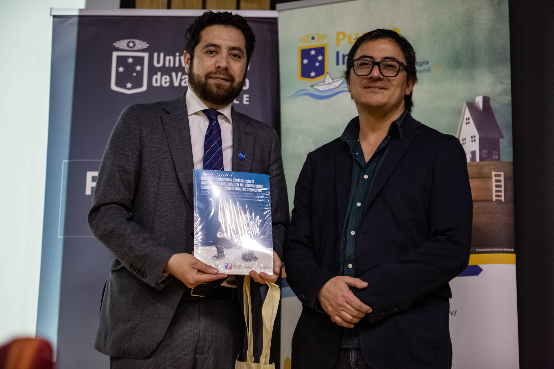 El acto de lanzamiento y presentación oficial de la “Guía de orientaciones clínicas para el abordaje psicoterapéutico de adolescentes tempranos con diagnóstico de depresión” tuvo lugar en el auditorio de la sede Hontaneda y contó con la presencia del director del Servicio Nacional de Protección Especializada a la Niñez y Adolescencia, Claudio Castillo, y del decano de la Facultad de Ciencias Sociales de la UV, Gonzalo Lira, entre otras autoridades.