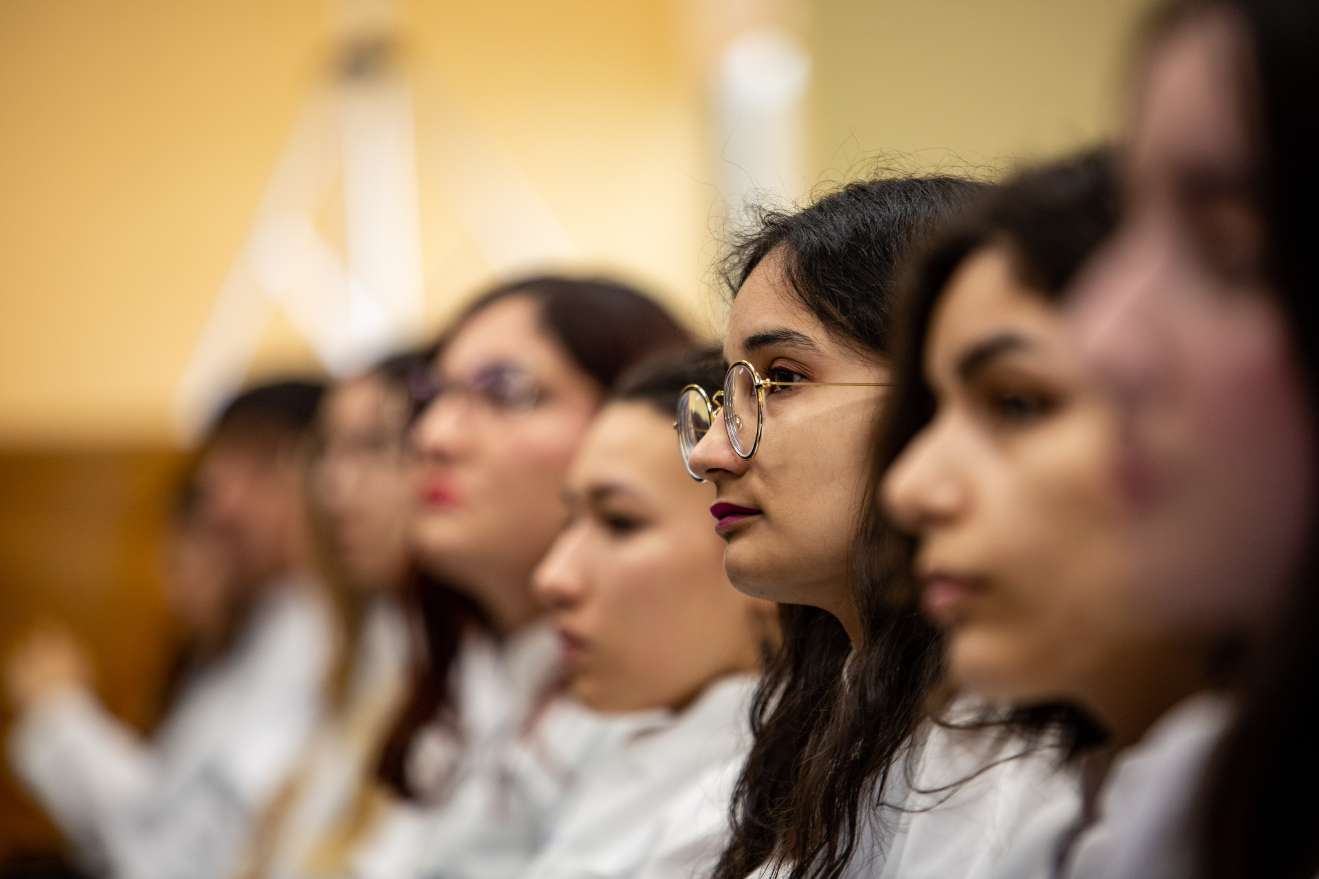 El inicio de esta etapa fue celebrado en la Ceremonia del Medio Farmacéutico, un acto cargado de simbolismo en el que las y los estudiantes, vestidos con su tradicional delantal blanco, recibieron de manos de sus profesores la piocha institucional que les distinguirá como representantes de la UV en este nuevo desafío académico.