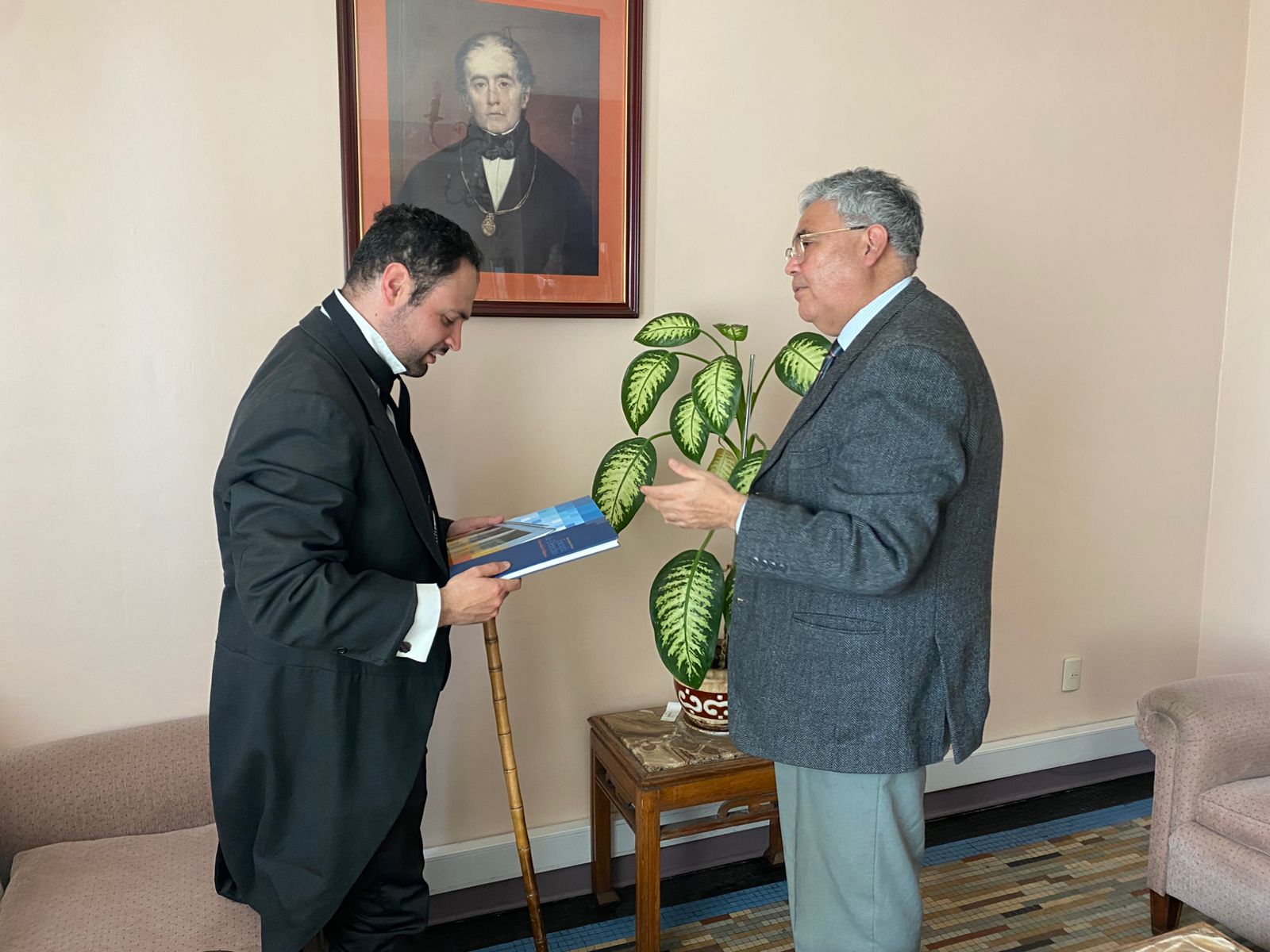 Durante la reunión, se conversó acerca de la historia y riqueza patrimonial que posee el edificio de la Escuela de Derecho de la UV, lo cual llamó la atención de Issac Reyna desde el momento en que entró al inmueble. Además, junto con las autoridades coordinaron su apoyo en la difusión de la próxima Temporada de Conciertos de Primavera —que iniciará en septiembre—, así como posibles acciones futuras en pos de la divulgación patrimonial de la Facultad de Derecho.