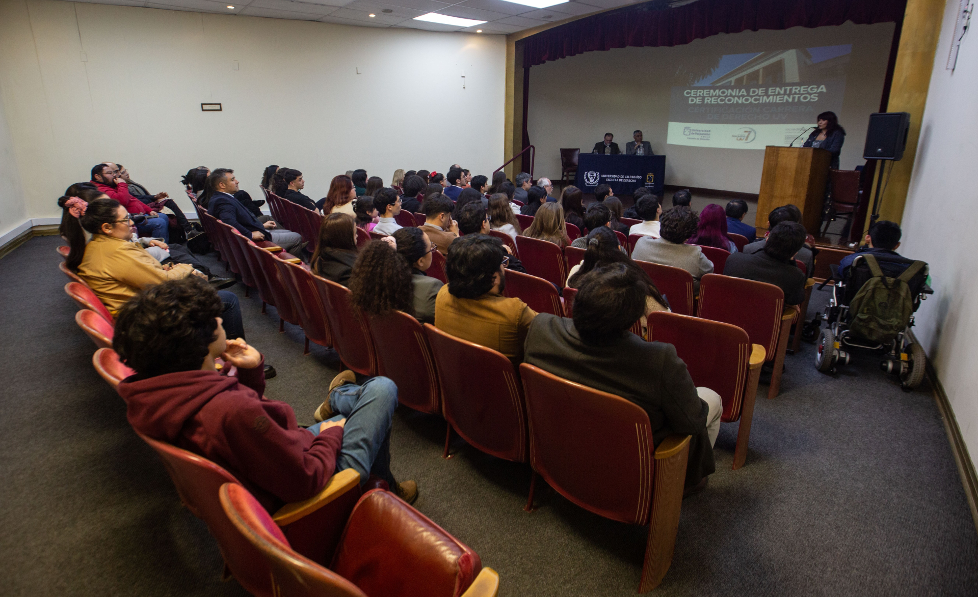La jornada fue presidida por el rector de la Universidad de Valparaíso, Osvaldo Corrales; el decano de la Facultad de Derecho, Ricardo Saavedra, y la directora de la Escuela de Derecho, Inés Robles, y en ella participaron la vicerrectora de Vinculación con el Medio, Paulina Gundelach; la vicerrectora de Investigación e Innovación, Marcela Alviña; el director de Extensión y Comunicaciones, Osvaldo Bizama; la vicedecana de la Facultad de Derecho y coordinadora del Comité de Autoevaluación, Patricia Reyes; el jefe de carrera de la Escuela de Derecho, Matías Rodríguez; cuerpo académico, funcionarios y funcionarias, estudiantes, egresados, egresadas, invitados e invitadas especiales.