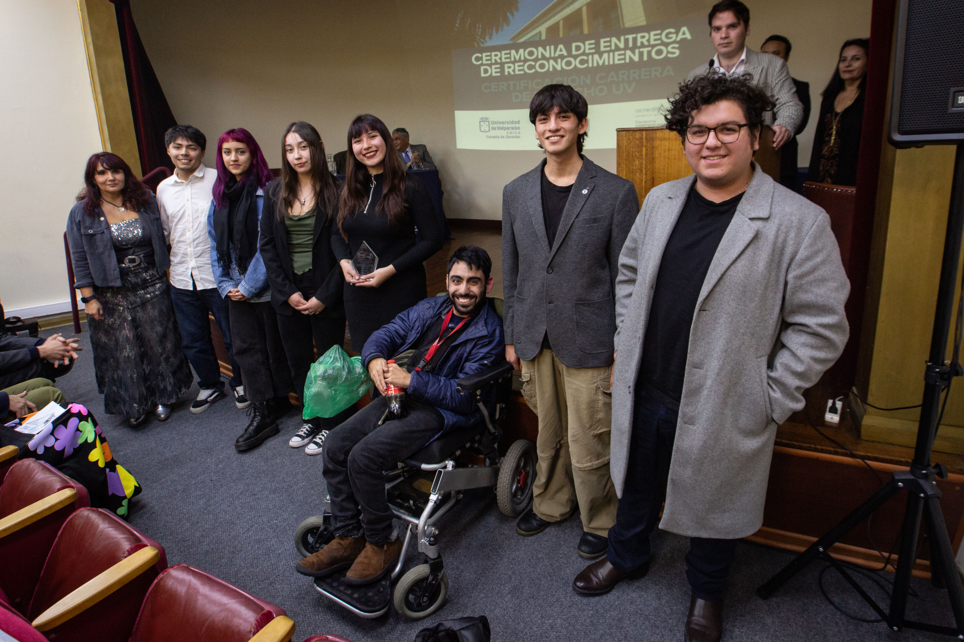 Finalmente, se hizo entrega de un reconocimiento a los y las estudiantes de la Escuela de Derecho que fueron parte de las entrevistas con los pares evaluadores: Isabella Jamett, Eduardo Araneda, Ibzán Orellana, Matías Oyarzo, Renata Arenas, Catalina Martínez, Denis Sarmiento, Emiliana Garay, Emilia Mayorga, Vicente Moya, Florencia Carter, Jennifer Letelier, Amikam Vargas, Diego Sebik, Thiare Baluarte, Joaquín Araneda, Francisca Romero, Antonia Zepeda, Kotte Rosas, Fernanda Cerda, Yeremy Fuenzalida, Nicole Contreras y Enrique de la Fuente.
