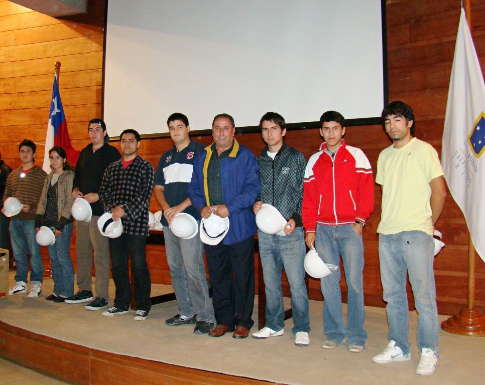 El rector de la Universidad de Valparaíso, Aldo Valle, participó de la ceremonia de recepción que ofreció la Escuela de Ingeniería en Construcción a sus nuevos alumnos, quienes ingresaron esta semana a clases. La entrega del casco blanco, elemento indispensable de trabajo y que identifica a estos profesionales, fue el punto central de esta ceremonia.