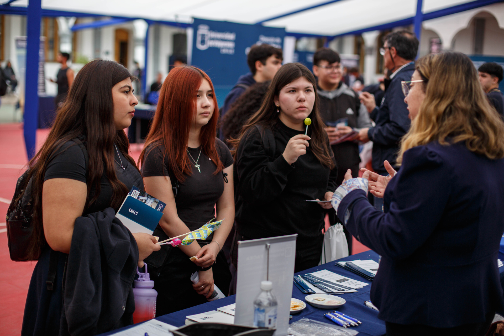 El epicentro del evento se vivió en el patio central de la sede, donde se instalaron bajo un toldo especialmente desplegado para la ocasión, una serie de stands de carreras que la institución imparte en Santiago, Valparaíso, Viña del Mar y San Felipe, así como de servicios estudiantiles, beneficios y admisión.