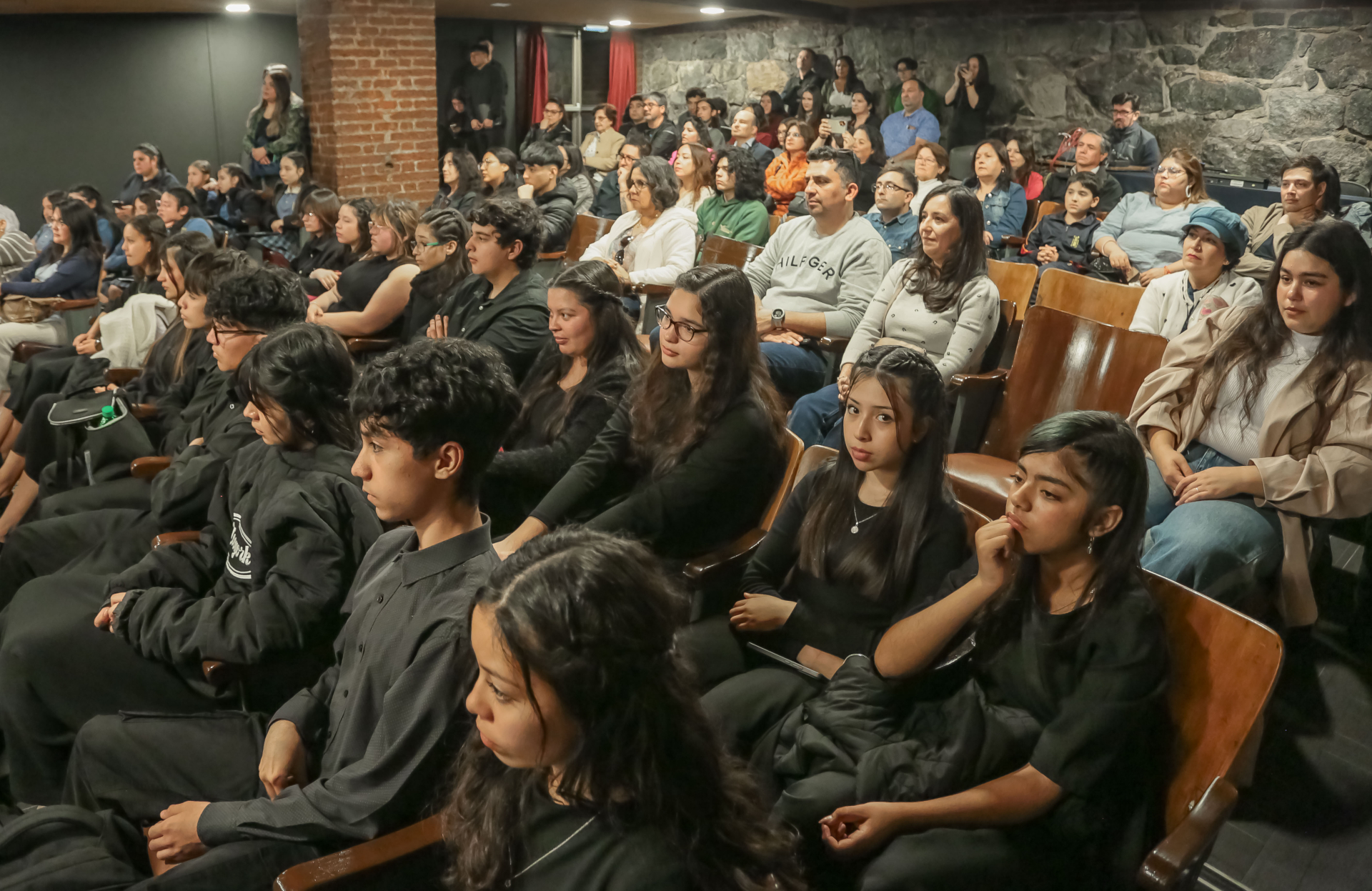 Por su parte, Macarena Silva expresó su “alegría de poder en esta segunda oportunidad reunir a todos estos niños, niñas, a sus profes, que además son nuestros exalumnos y exalumnas, son cosas que producen mucho orgullo. Creo que el resultado es buenísimo, que el espacio de hacer música de manera colectiva, de encontrarnos en el arte y en la música, es un factor protector en las infancias y en la adolescencia. En un mundo tan individualista, hacer canto colectivo nos protege, nos inspira. Estamos muy contentas, yo muy contenta también de que Ximena me invite a acompañarla para mediar este encuentro. Así que pura felicidad, mucho orgullo con nuestros estudiantes, con los niños y con nuestra carrera de Pedagogía en Música, que sigue contactándose con la escuela, con las infancias y con las adolescencias”.