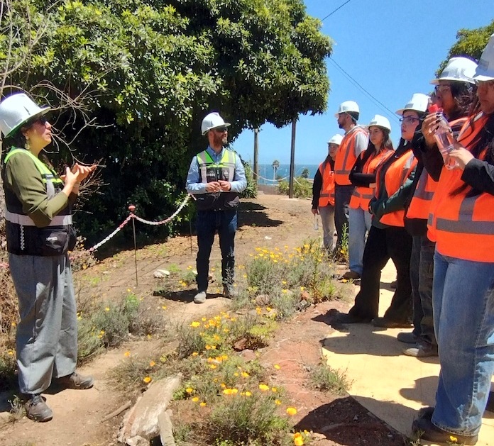 Durante la jornada, que forma parte de la asignatura Habilidades Directivas, impartida por la profesora Leslie Bridshaw, los estudiantes recibieron en terreno una charla explicativa a cargo del equipo de relacionamiento comunitario de la empresa, donde se abordaron los avances del proceso de saneamiento ambiental, las medidas remediales implementadas y la planificación del futuro desarrollo urbano.
