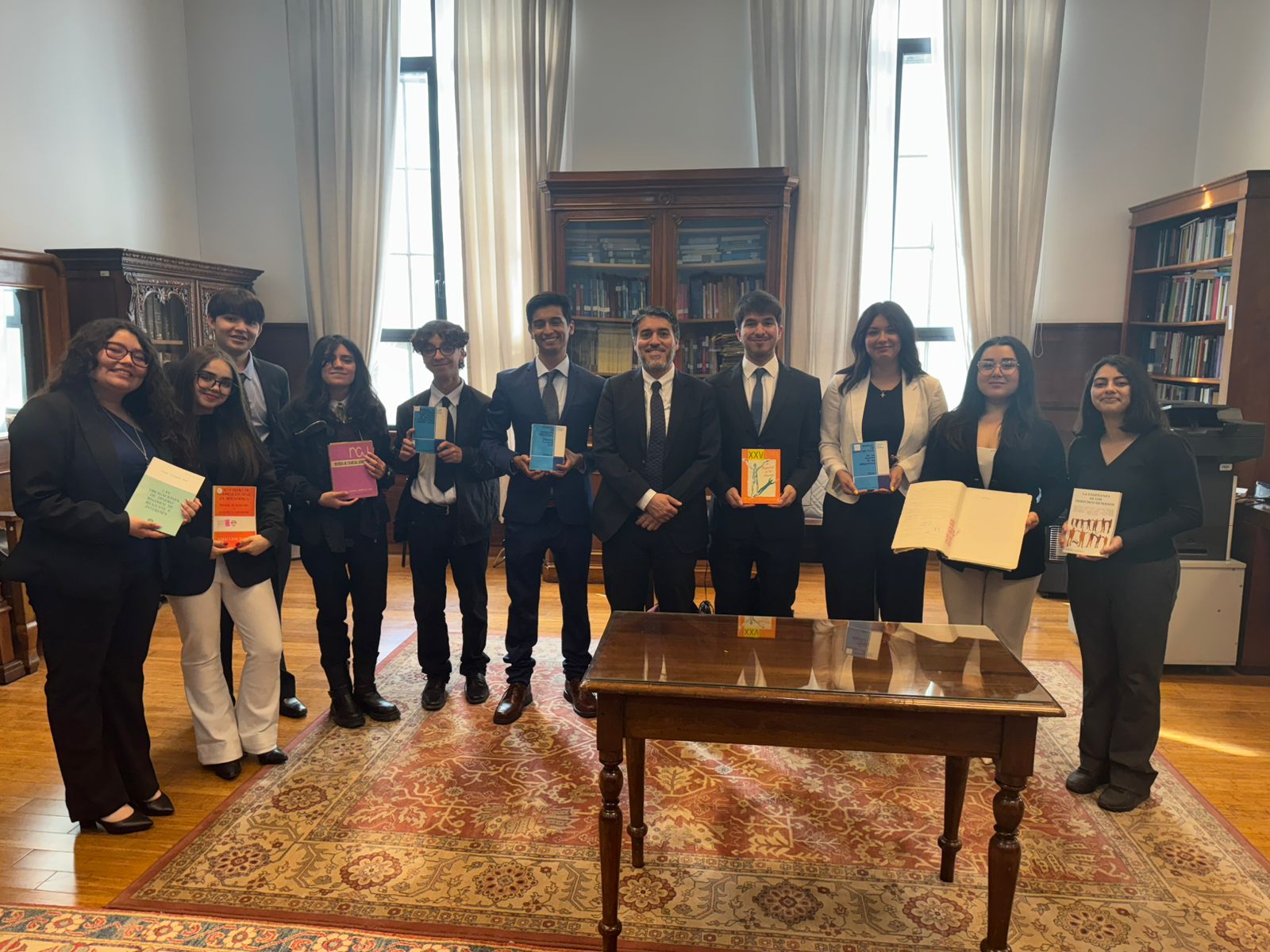 Las y los estudiantes visitaron la biblioteca de la institución, donde apreciaron una donación realizada por el Premio Nobel Pablo Neruda. Además, se encontraron con los libros de Edeval, sello editorial de la Facultad de Derecho, y vieron el funcionamiento de la Unidad no Reformada.