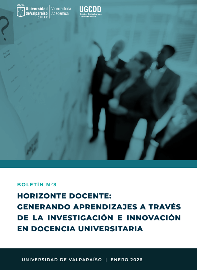 La Universidad de Valparaíso dio a conocer el tercer número del Boletín Horizonte Docente, una publicación impulsada por la Unidad de Gestión Curricular y Desarrollo Docente (UGCDD), dependiente de la Dirección General de Pregrado de la Vicerrectoría Académica. Este boletín se ha consolidado como un espacio institucional para compartir avances, aprendizajes y proyecciones en torno a la investigación e innovación en docencia universitaria.